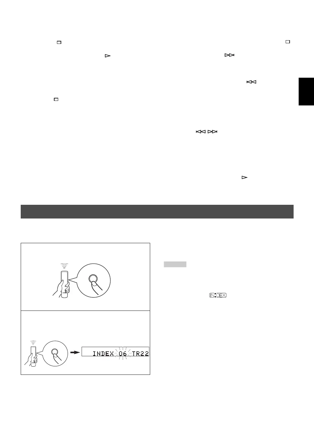 Falls die Titel einer CD mit Indexnummern versehen sind, kann die Wiedergabe von einer gewünschten Indexnummer