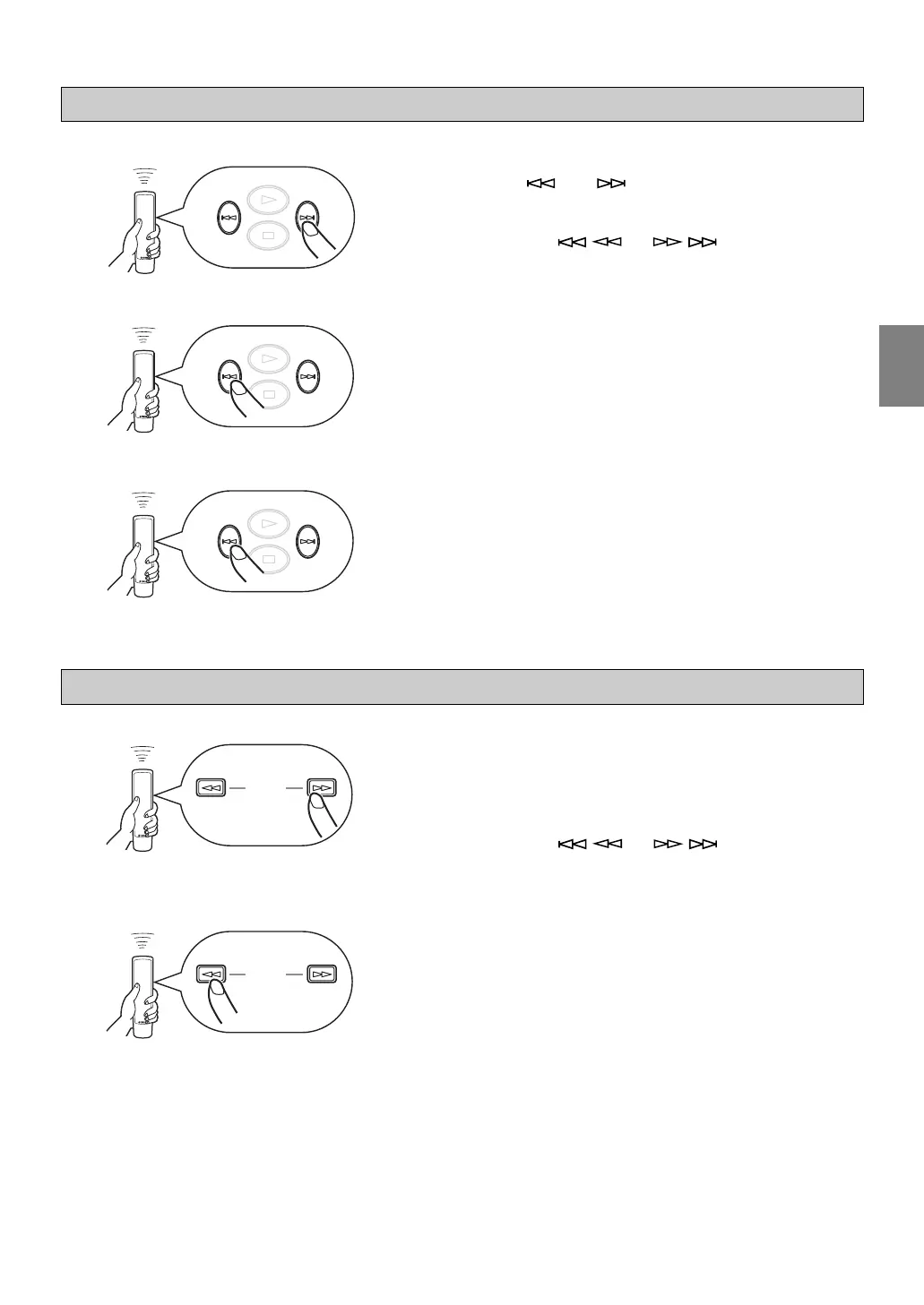 ● Håll (eller ) på fjärrkontrollen intryckt för att