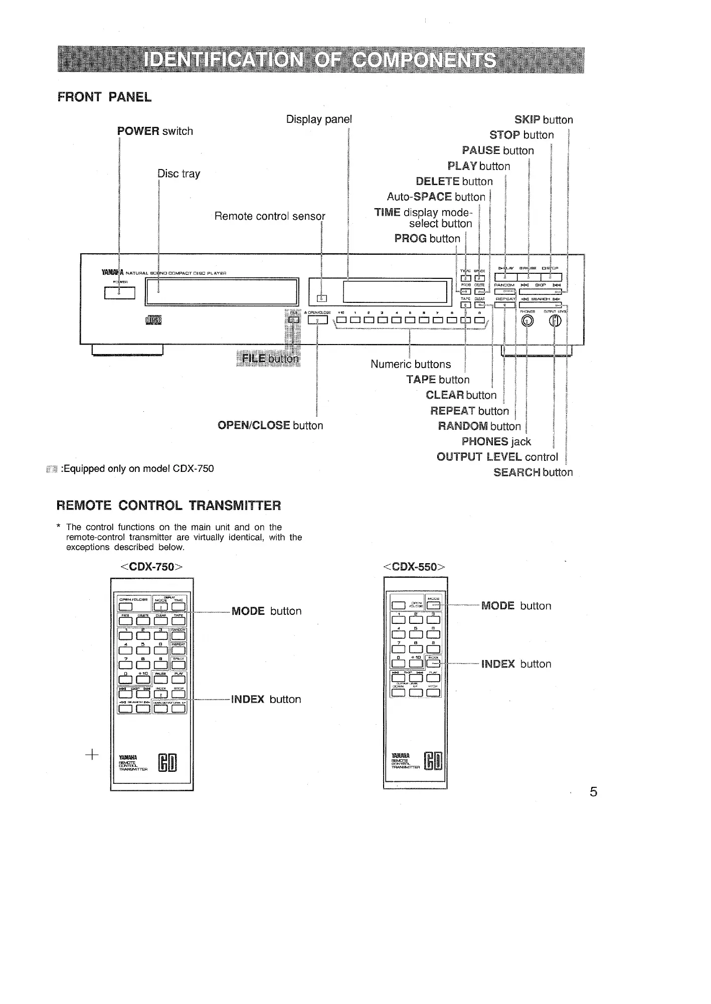 Yamaha CDX-550 - Identification of Components; Remote Control Transmitter