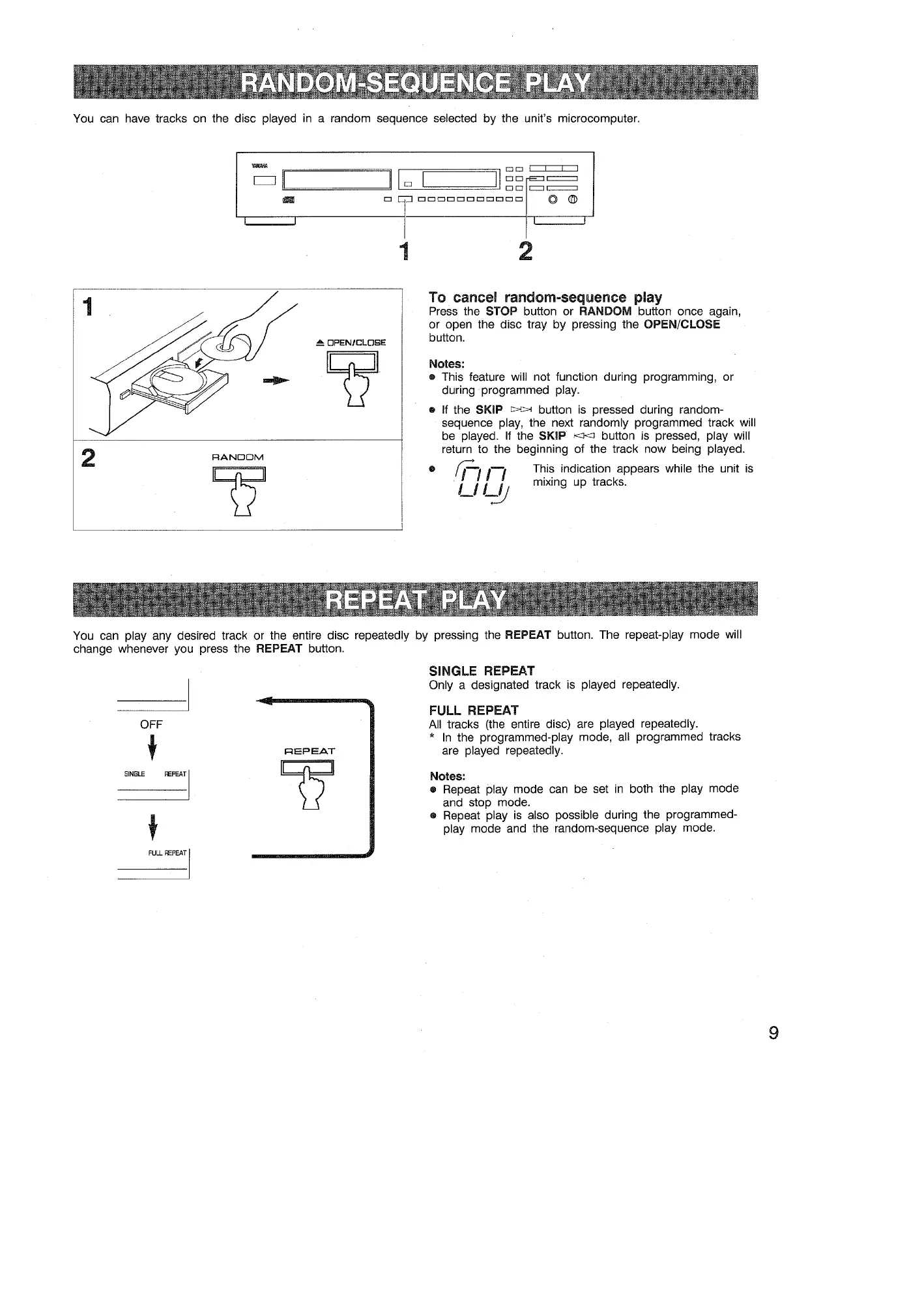 Yamaha CDX-550 - Random-Sequence Play; To cancel random-sequence play; Repeat Play; Single Repeat