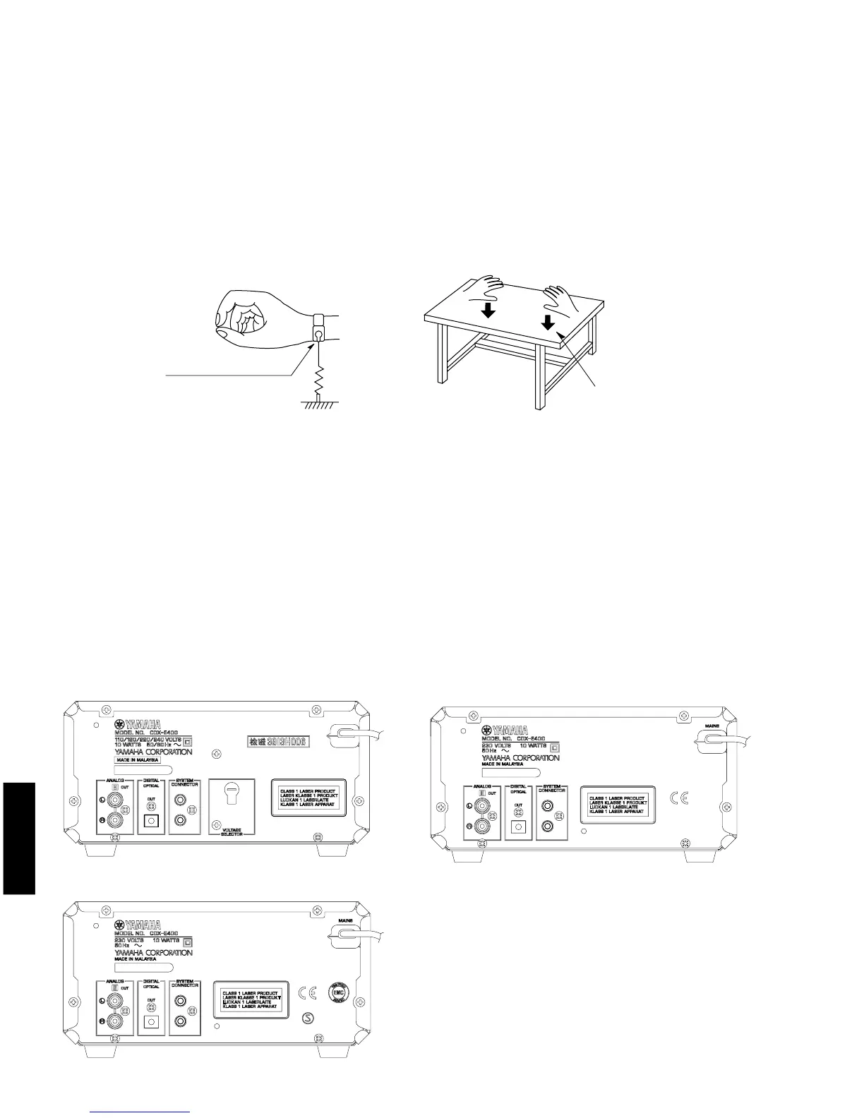 The laser diode in the CD mechanism unit (optical pickup) may be damaged due to static electricity from clothes or
