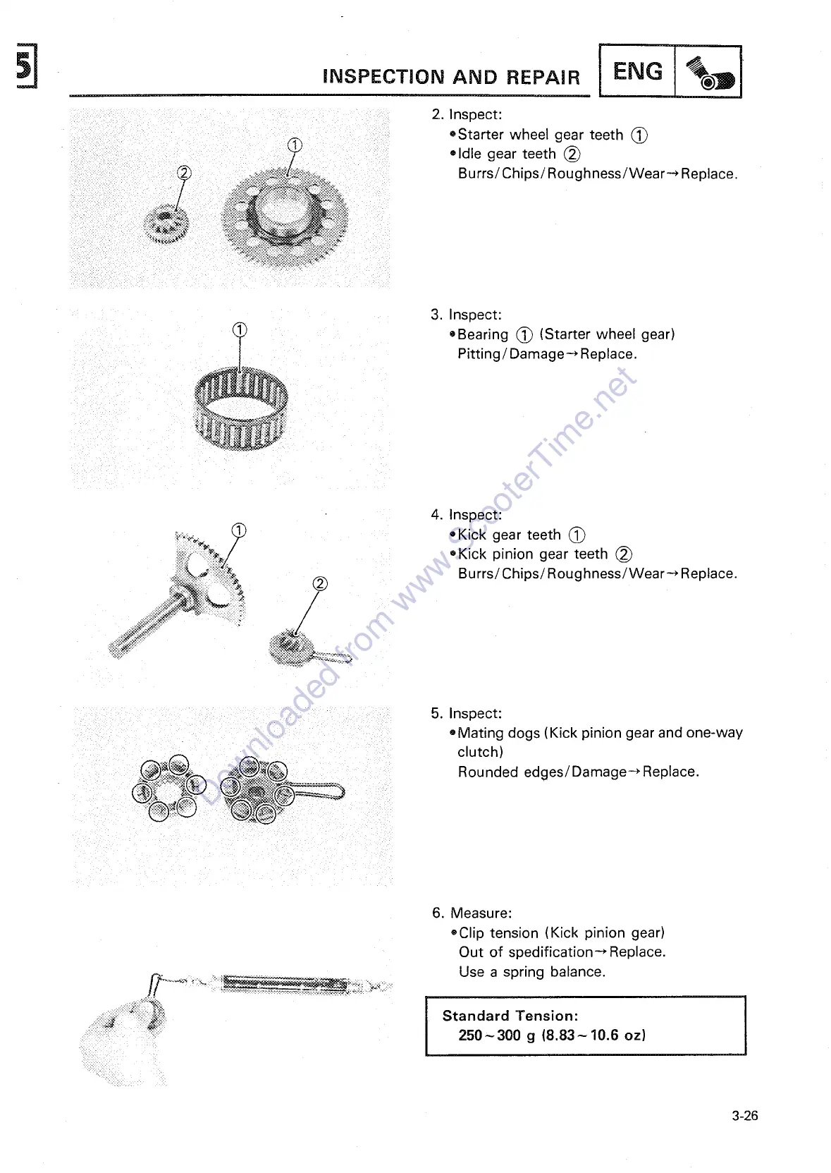 oMating dogs (Kick pinion gear and one-way