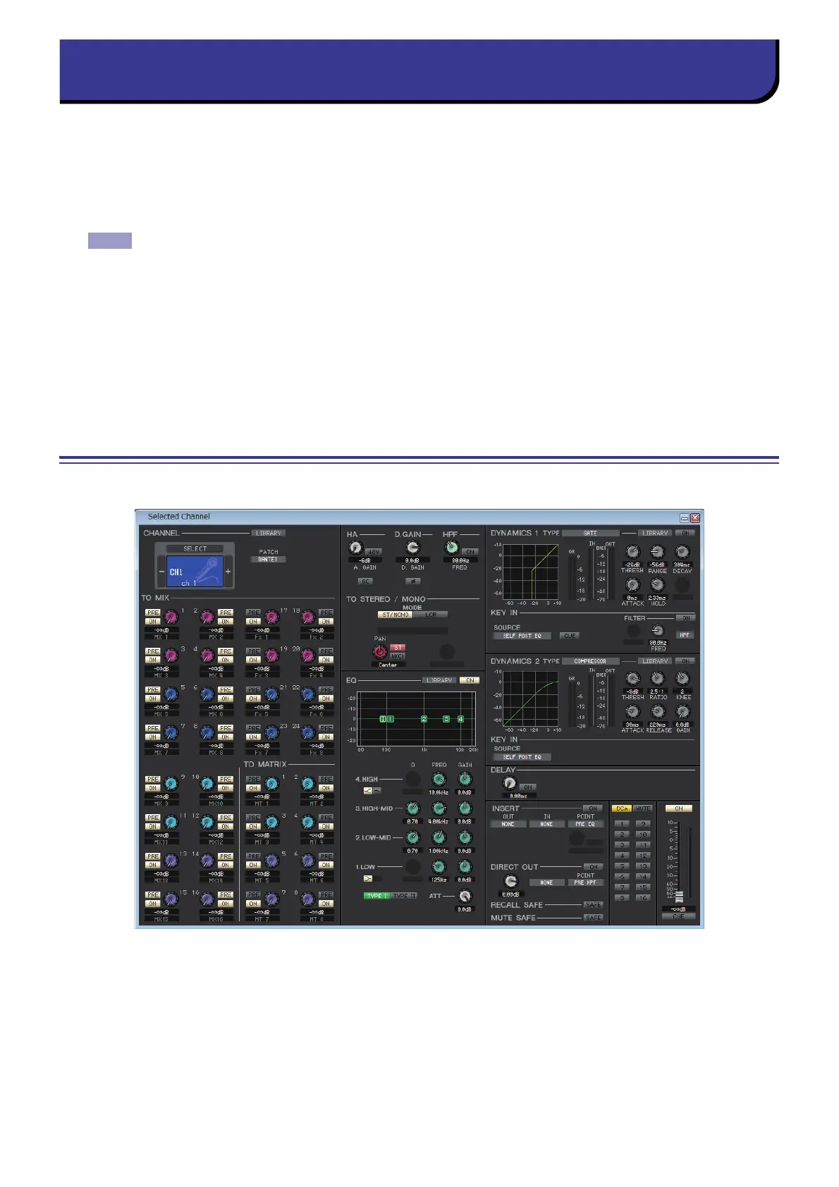 ST IN channels 1–8), or output channels (MIX channels 1-24, MATRIX channels 1-8, and STEREO/MONO channels.)