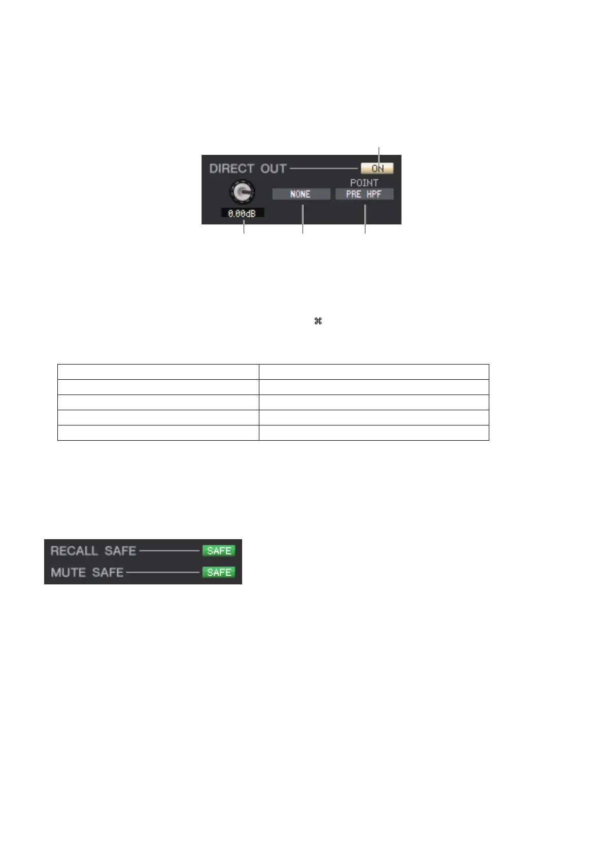 Selects the position at which direct out will be patched. Choose from PRE HPF, PRE EQ, PRE FADER, or POST ON.