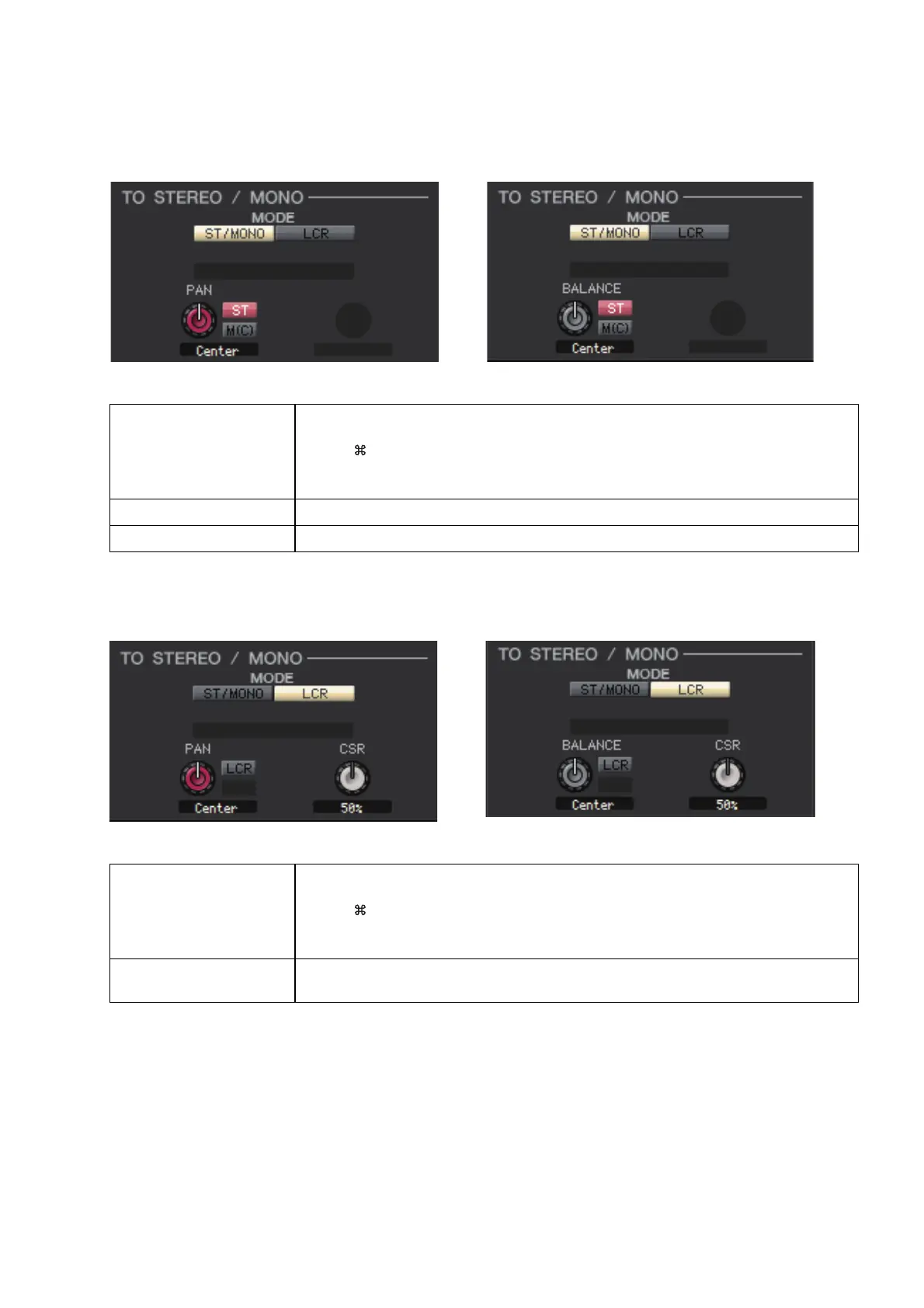 Adjusts the proportion of the CENTER channel level relative to the STEREO bus L/R in a
