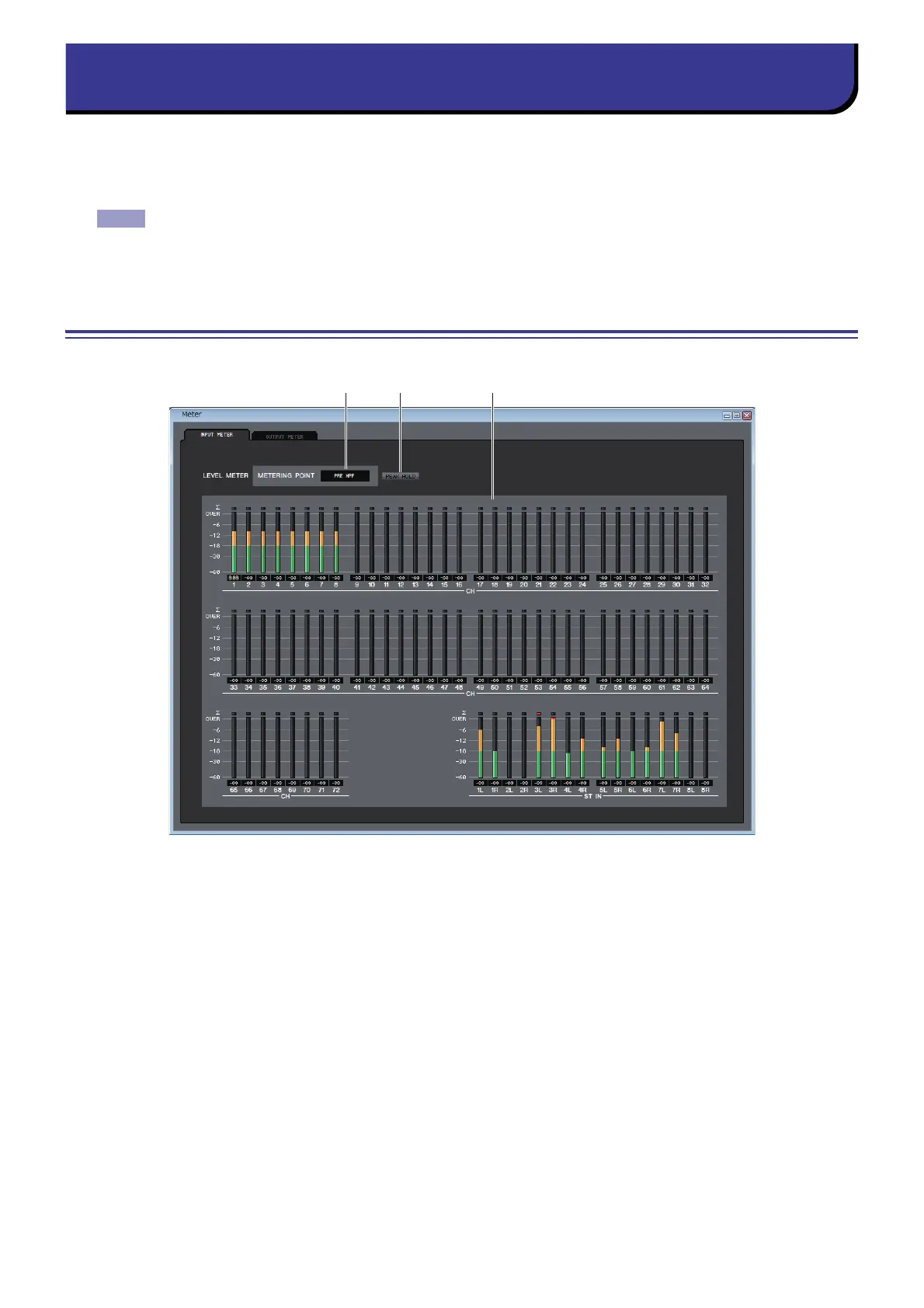 This window is divided into INPUT METER and OUTPUT METER; to switch pages, click the tabs located at the top of the