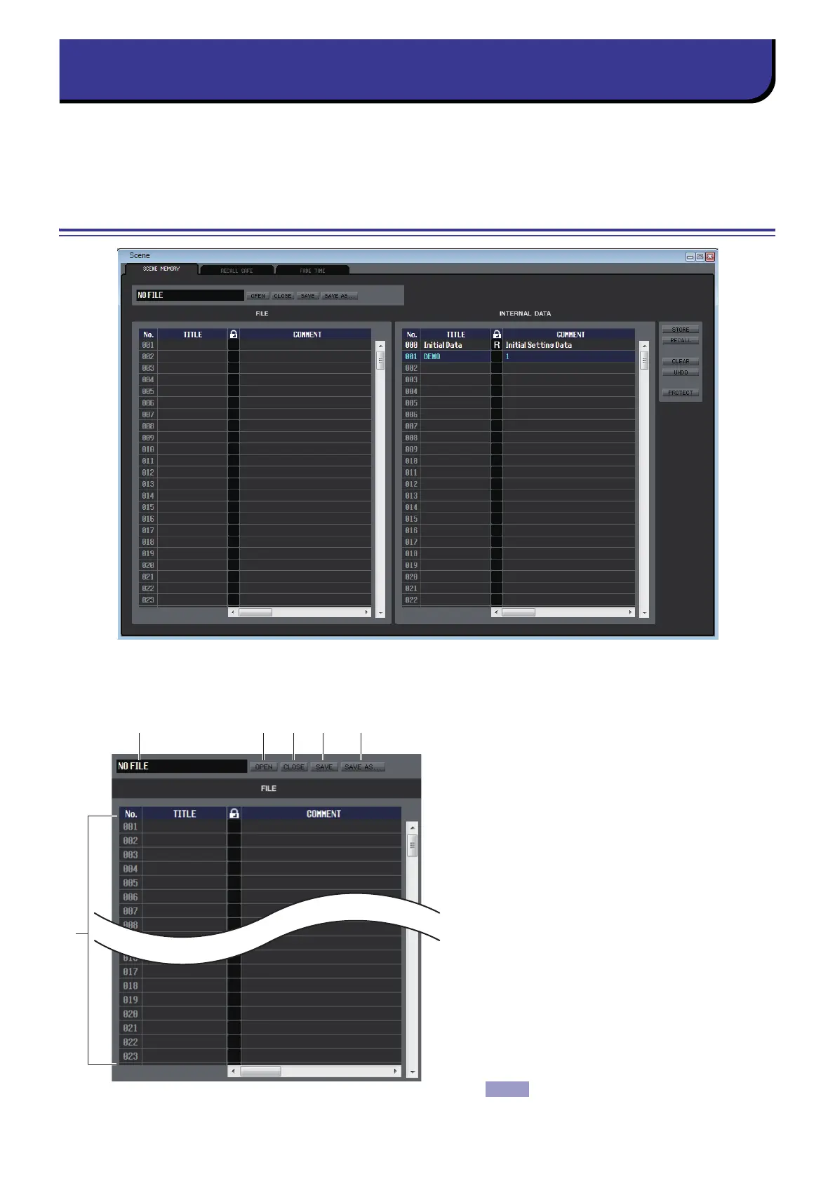 Here you can edit the CL’s scene memories. You can also load scene library files from a USB flash drive or from a drive of