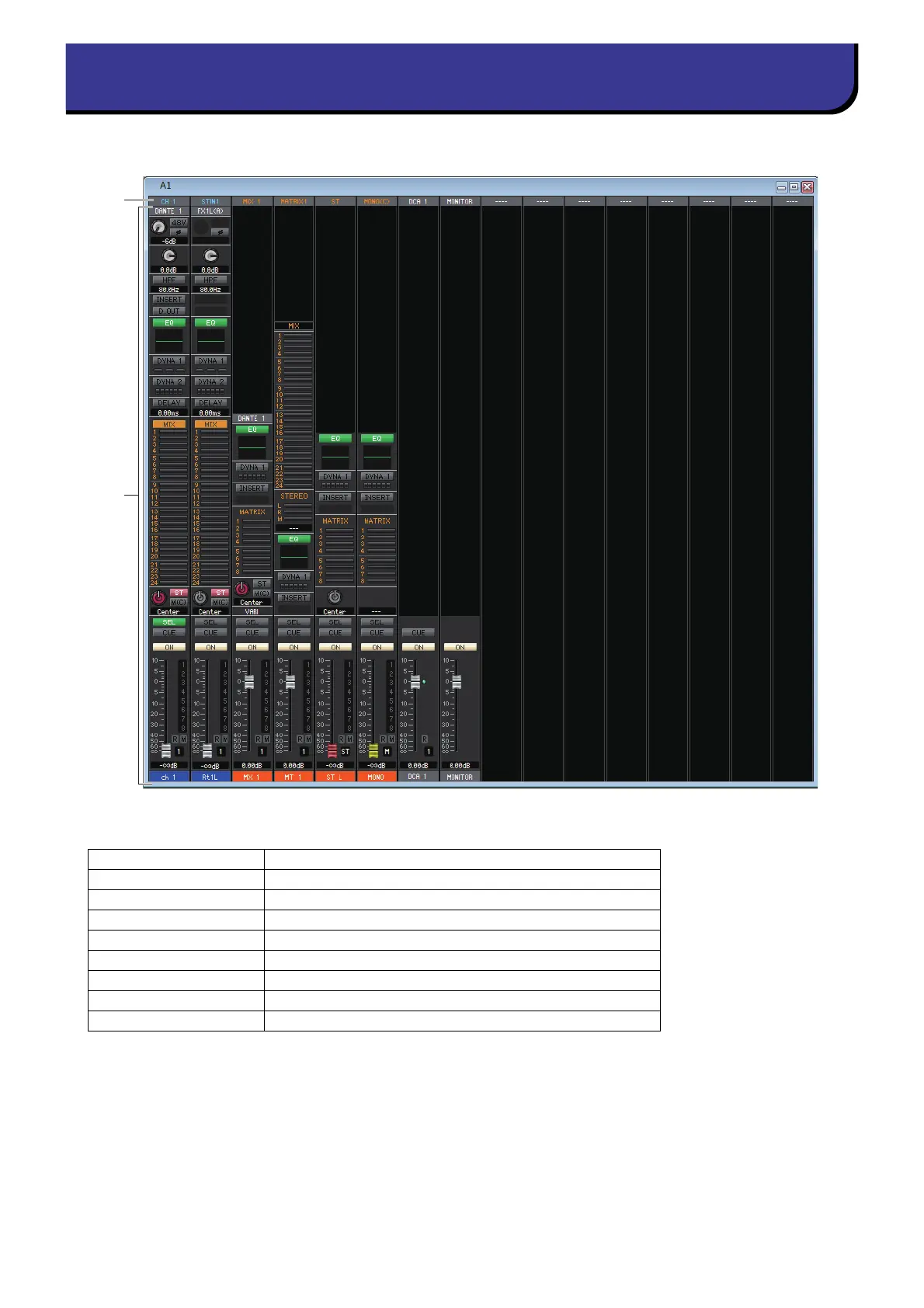 This window shows the channels of the custom fader bank setup. To open this window, choose [Custom Fader Bank] from