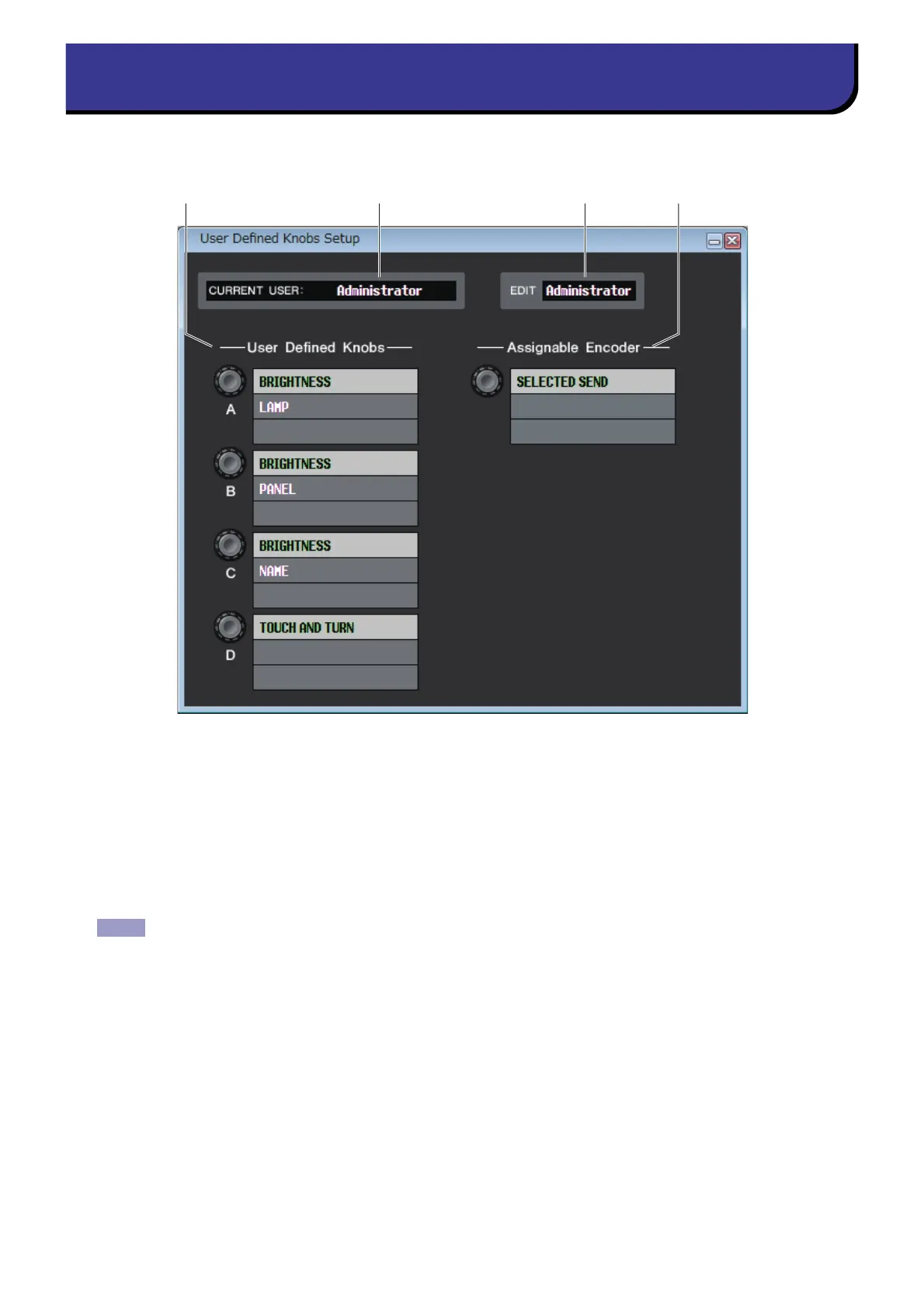 To open this window, choose [User Defined Knobs Setup] from [Windows] menu.