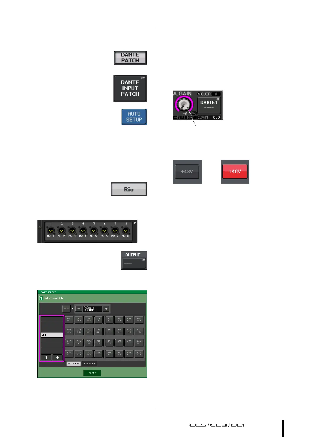 3. Press the +48V button in the GAIN/PATCH