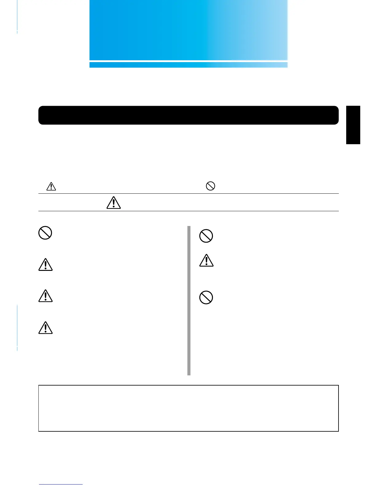 : This icon indicates points which should be paid attention to. : This icon indicates actions that are prohibited.