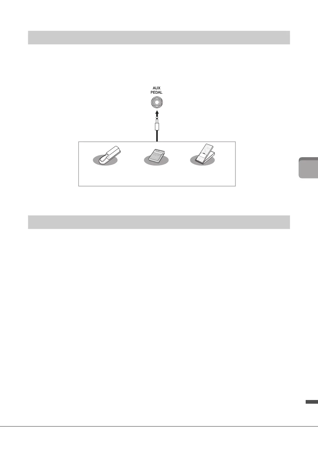 [AUX PEDAL] jack. A footswitch can be used for switching functions on and off, while a foot controller