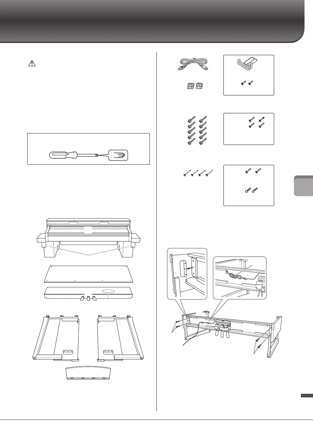 • Be sure to tighten all screws upon completing assembly of the