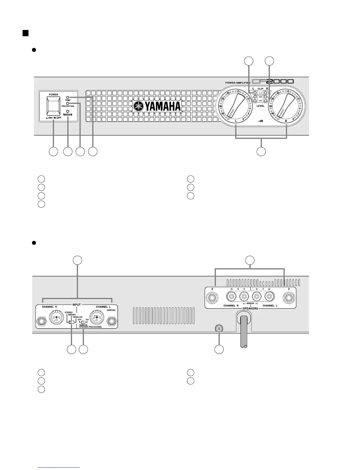 Yamaha CP2000 - Panel Layout; Front Panel; Rear Panel