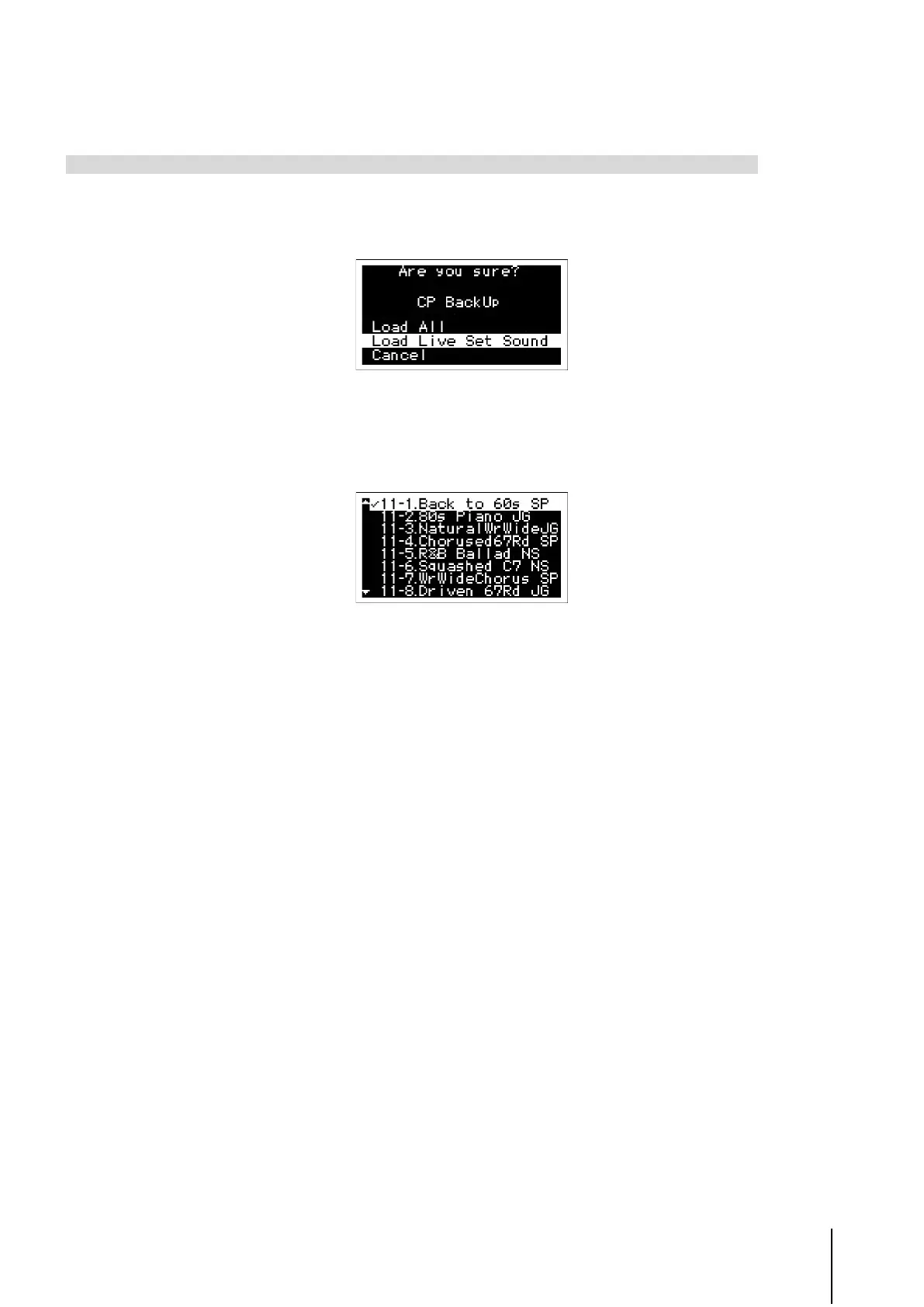When you select “Load Live Set Sound,” the following screen is shown, and then you can choose the desired Live Set Sound to load to your