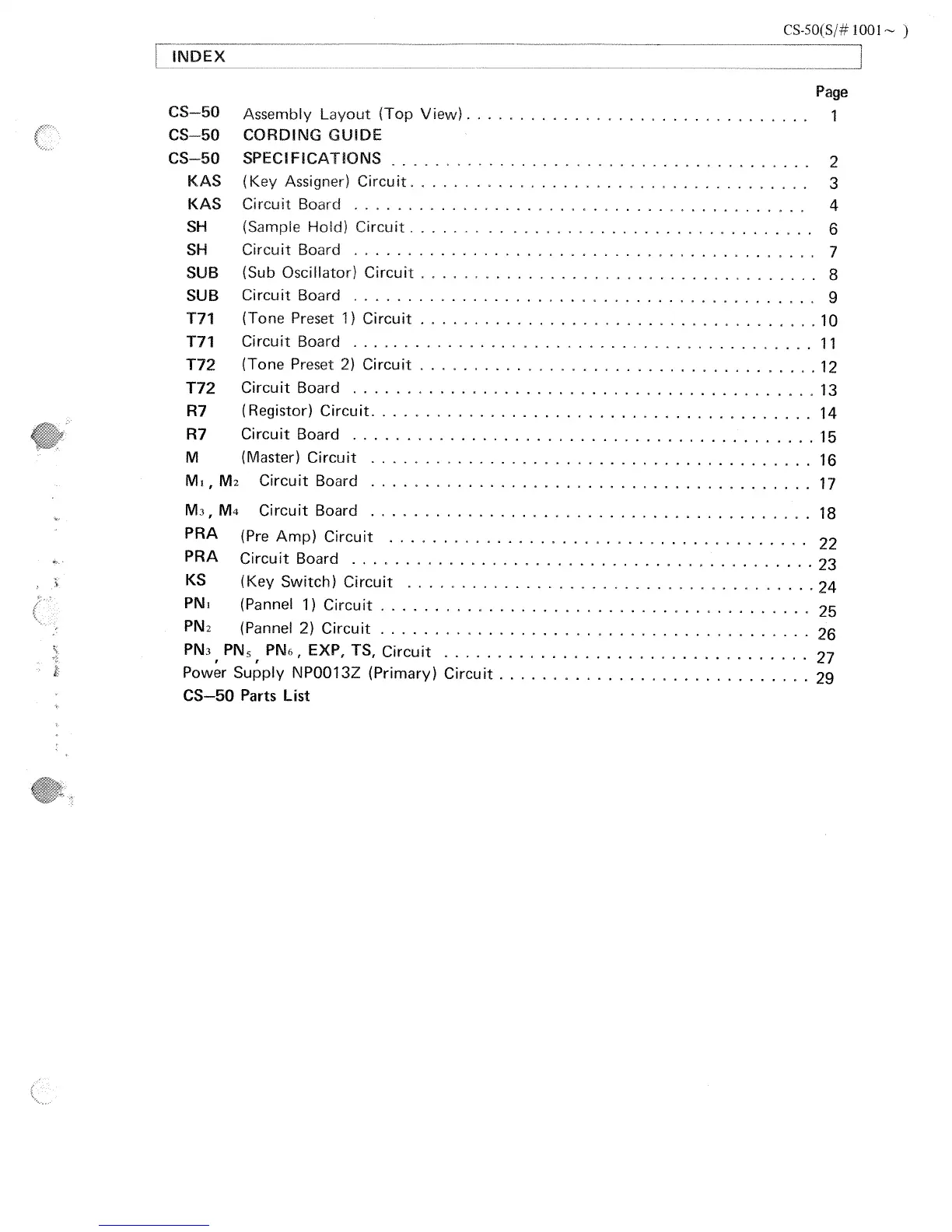 Yamaha CS-50 - Index