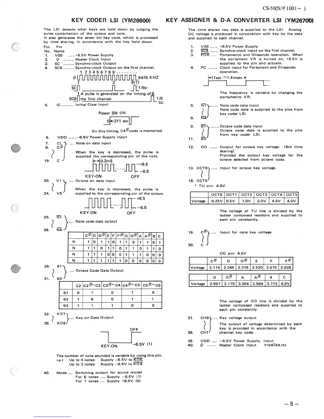Yamaha CS-50 - Key Codes LSI; Key Assigner & D-A Converter LSI