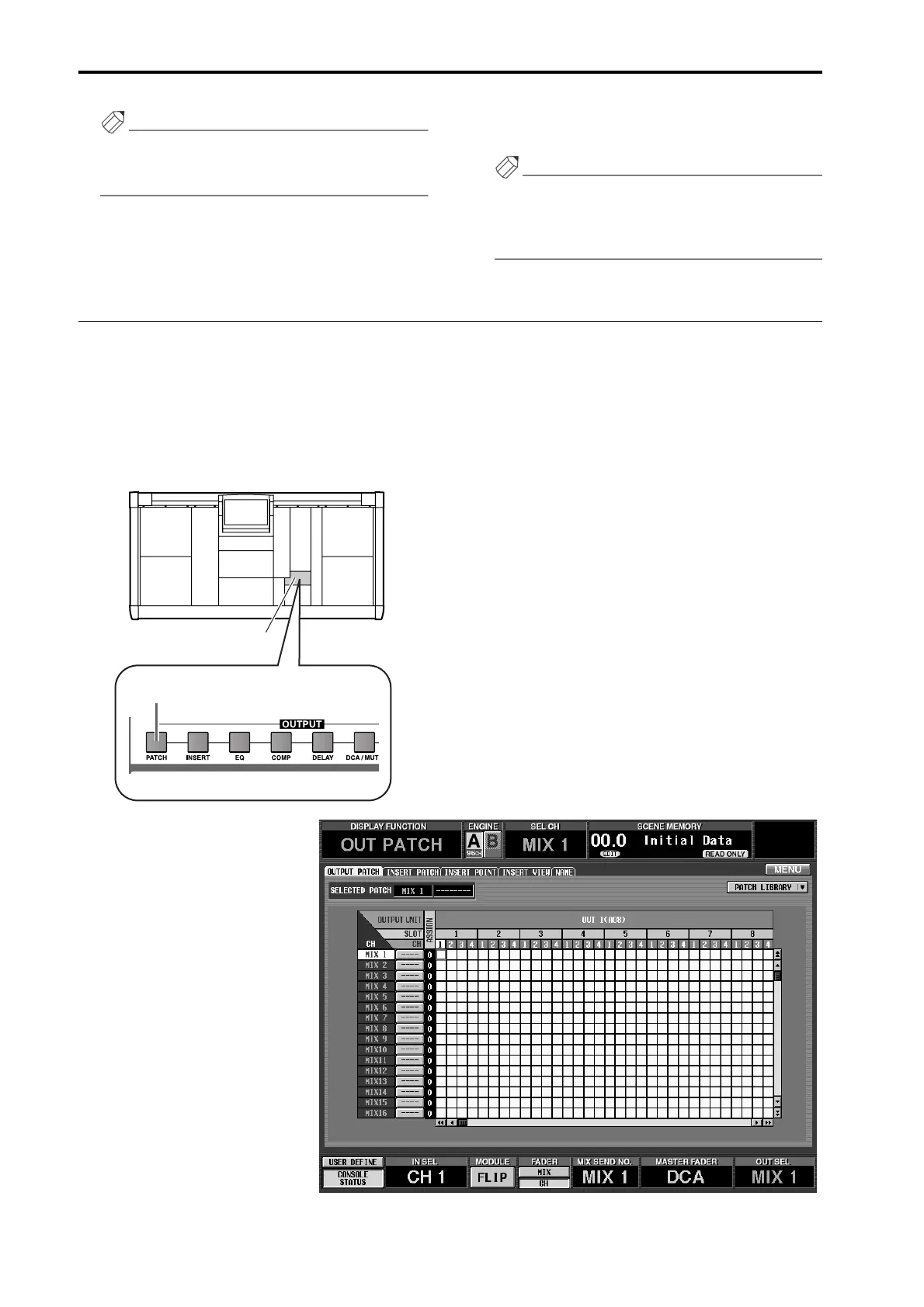 Here’s how to patch an output unit to an output channel (MIX channel, MATRIX channel, STEREO A/B channel) and
