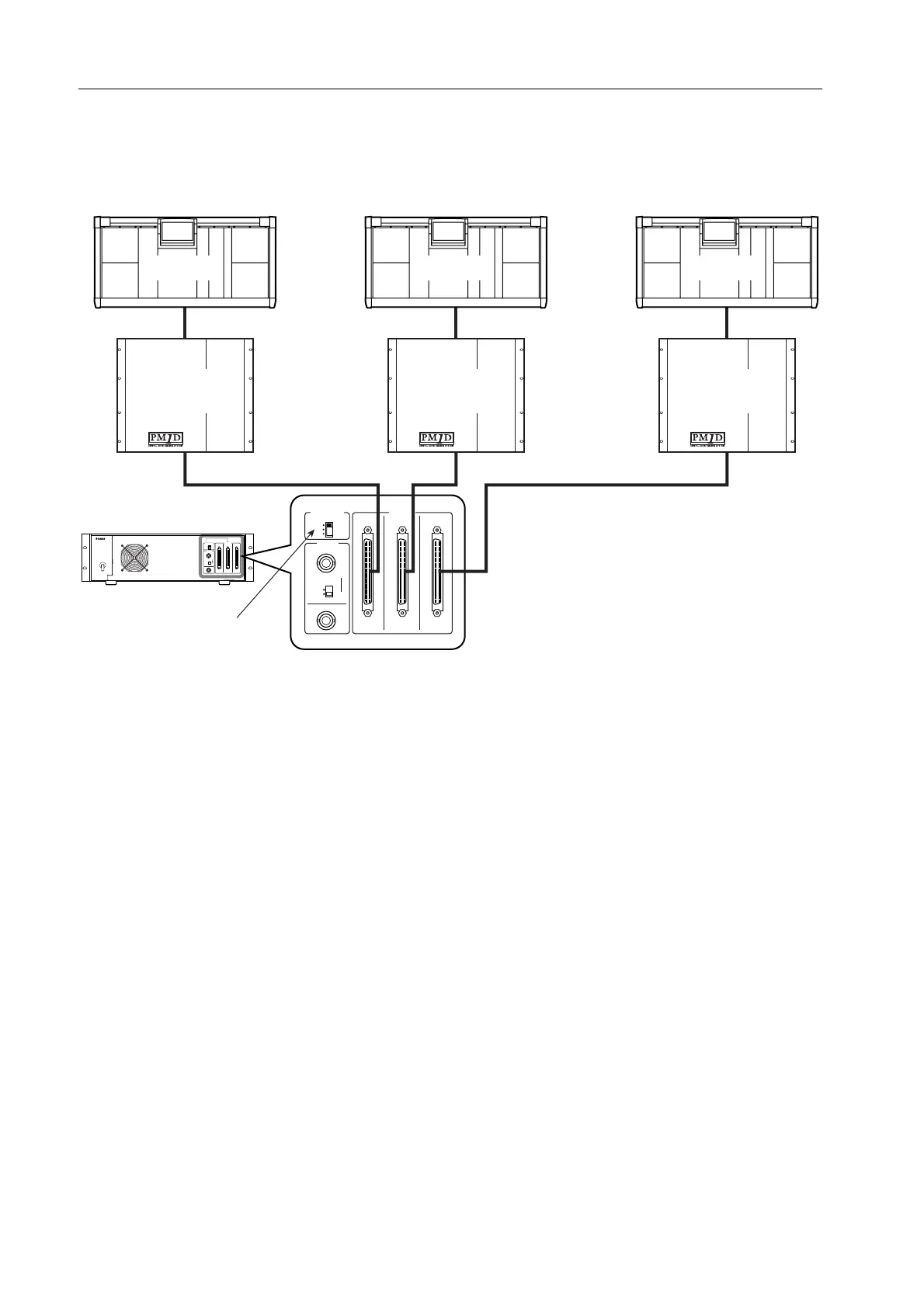 PUT jacks A–C are connected to engines (DSP1D) 1–3, each with a different Unique ID.