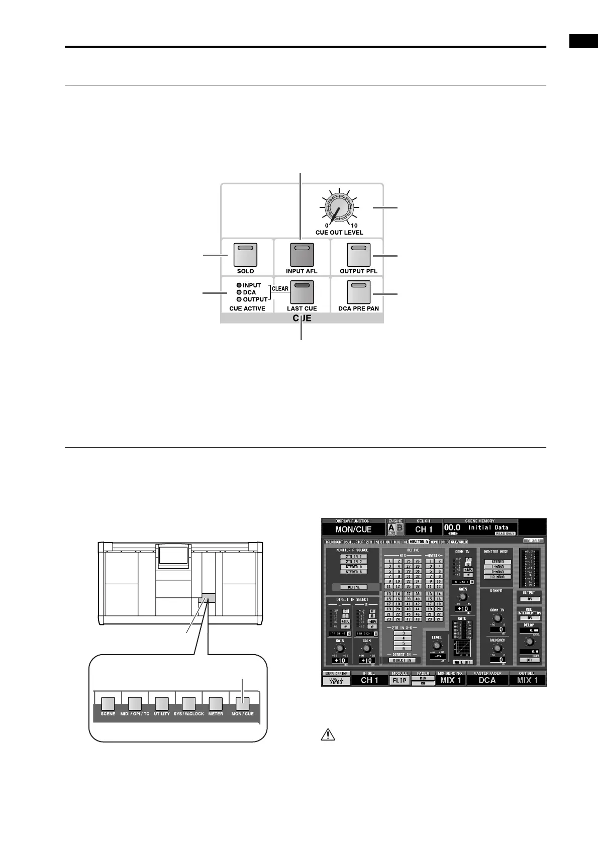 CUE function CUE/SOLO screen). The controls and functions of the CUE section are explained below.