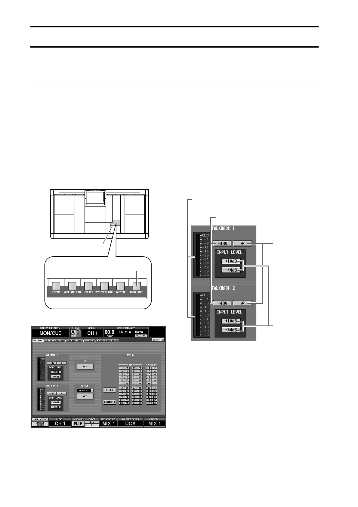 lowing TALKBACK screen (MON/CUE function).