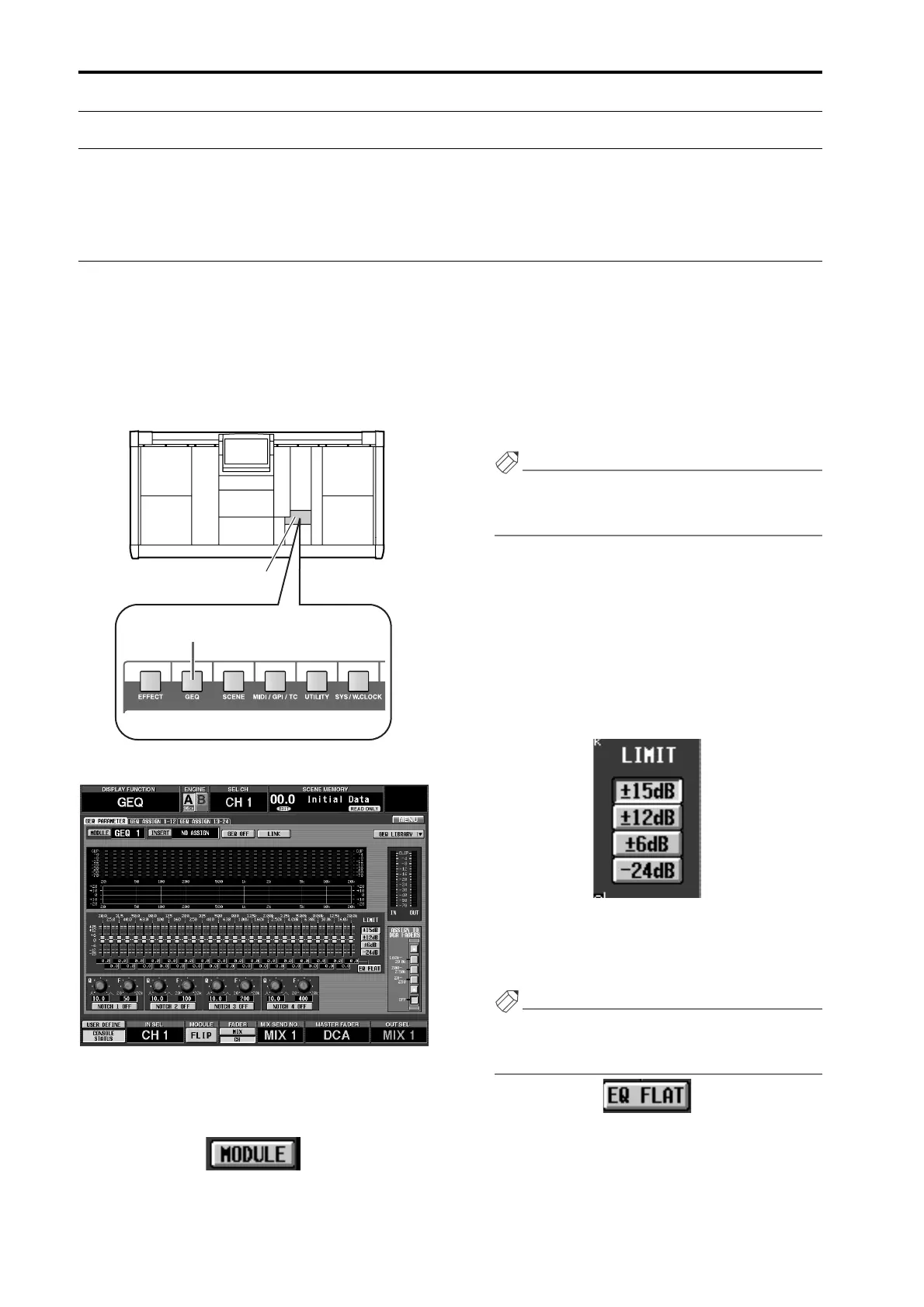 Here’s how to control the desired GEQ module by using the virtual faders and virtual knobs shown in the GEQ function