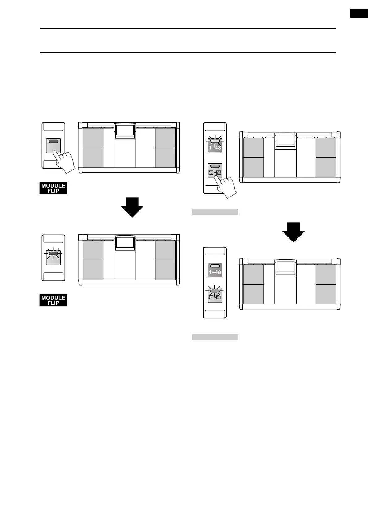 SELECTED INPUT CHANNEL block MODULE FLIP section, and in the MASTER block GLOBAL LAYER section. {The