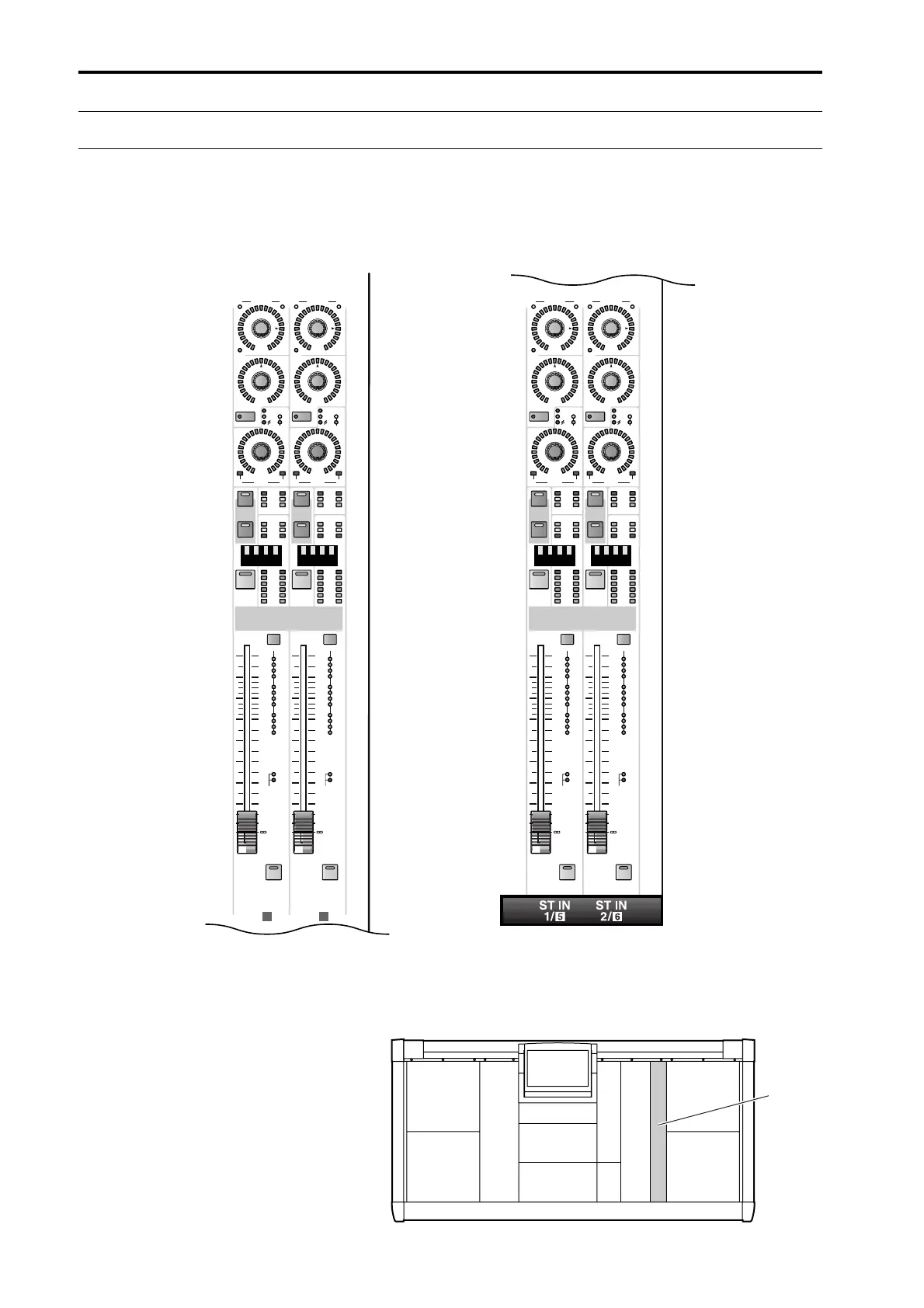 This block adjusts the pan and level of the stereo signals patched to ST IN channels 1–8 {1–4}, and sends them