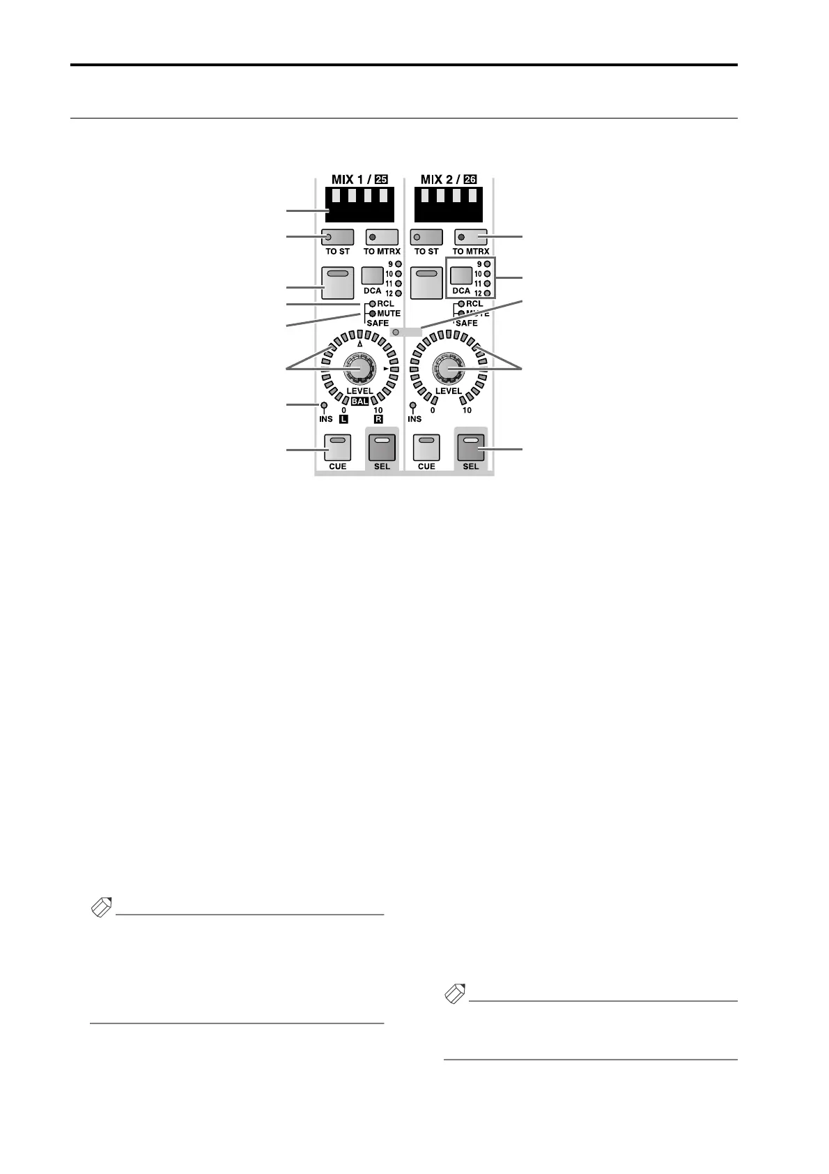 In this section you can switch the on/off status and set the output level of each MIX channel 1–48.