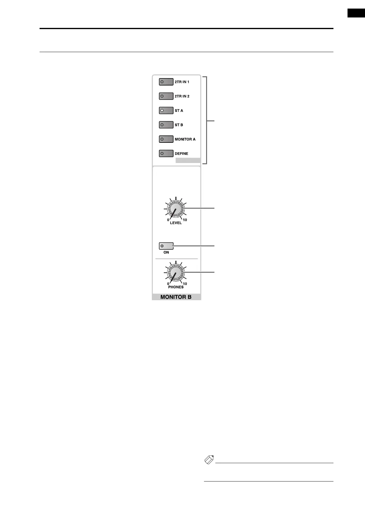 This section selects the monitor source for the MONITOR B output, and adjusts its level.