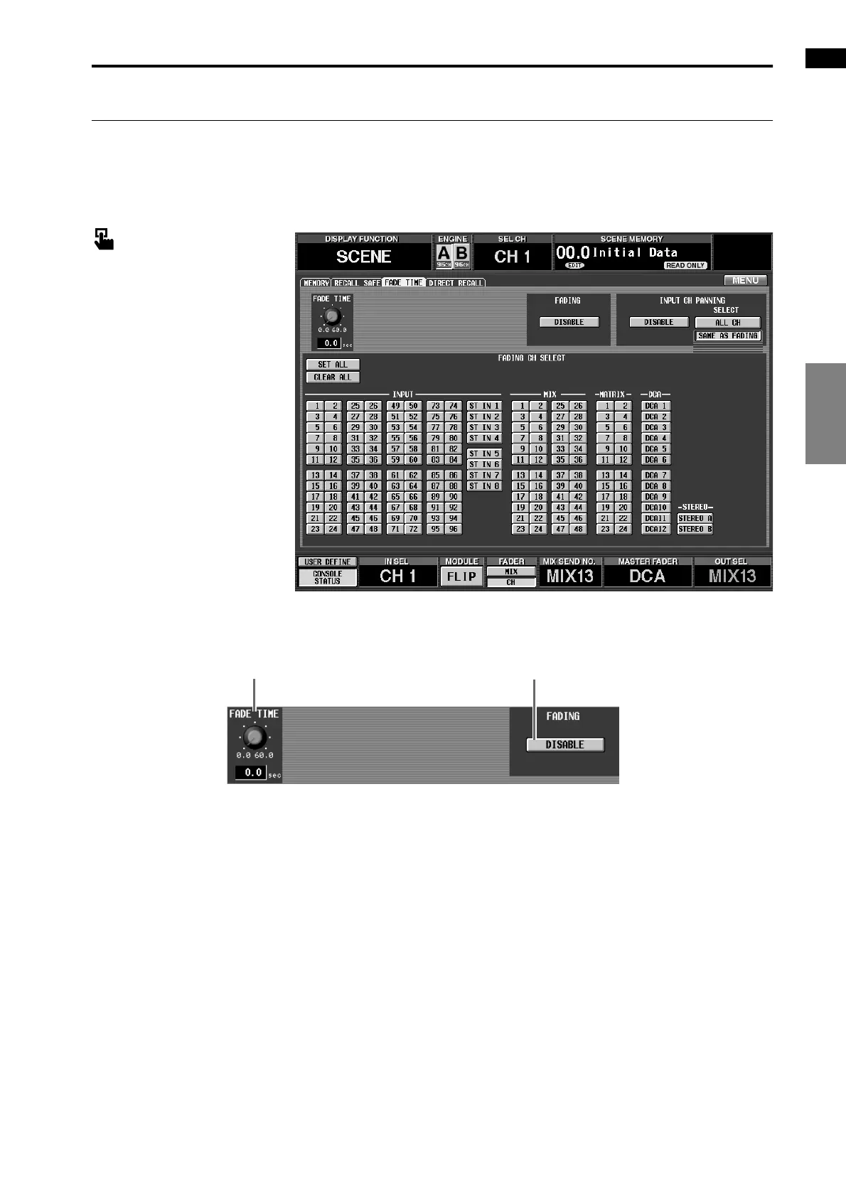 Make settings for the Fade function that smoothly changes the faders until they reach the levels specified by a
