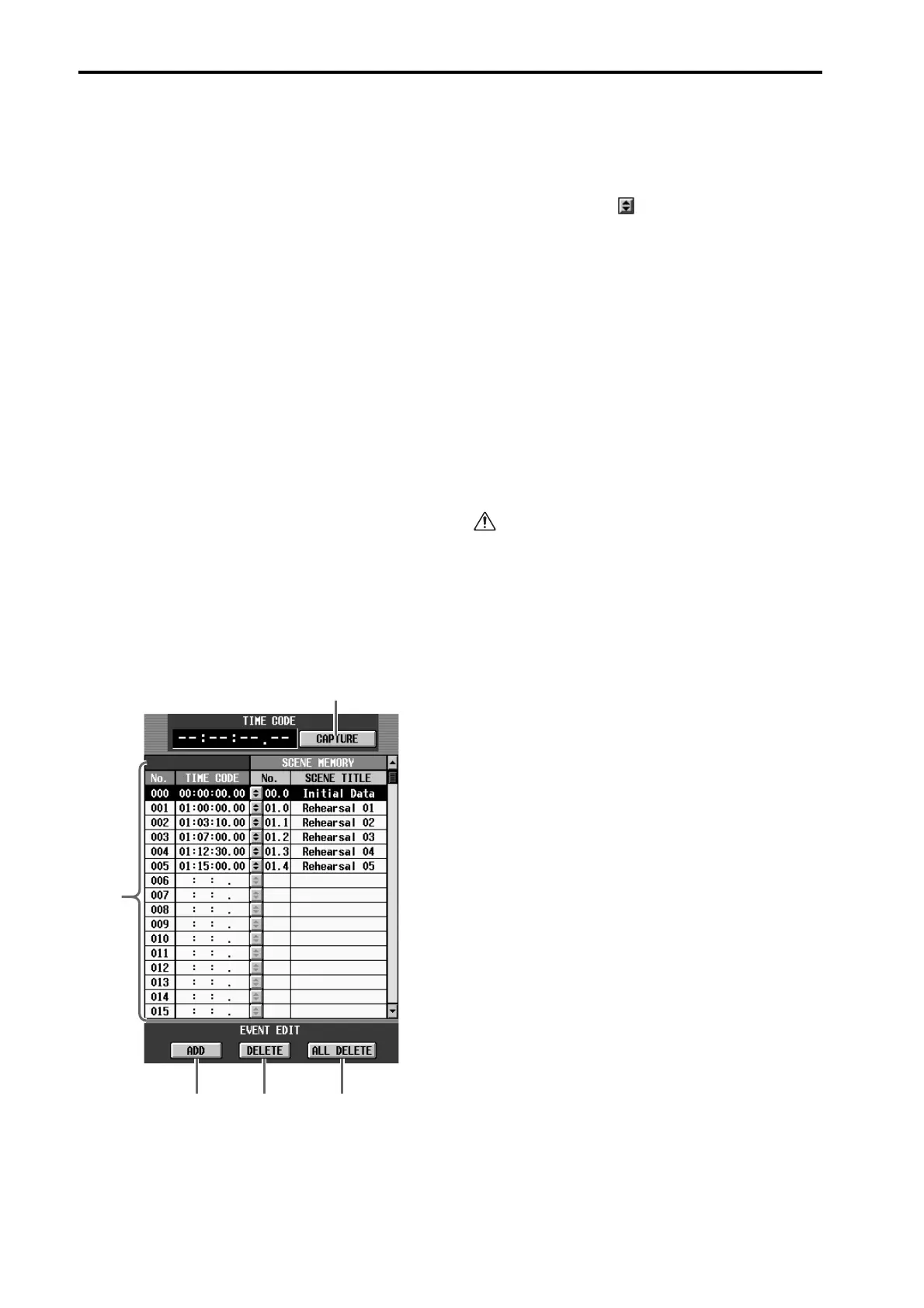 SCENE MEMORY list, this button deletes the cur-