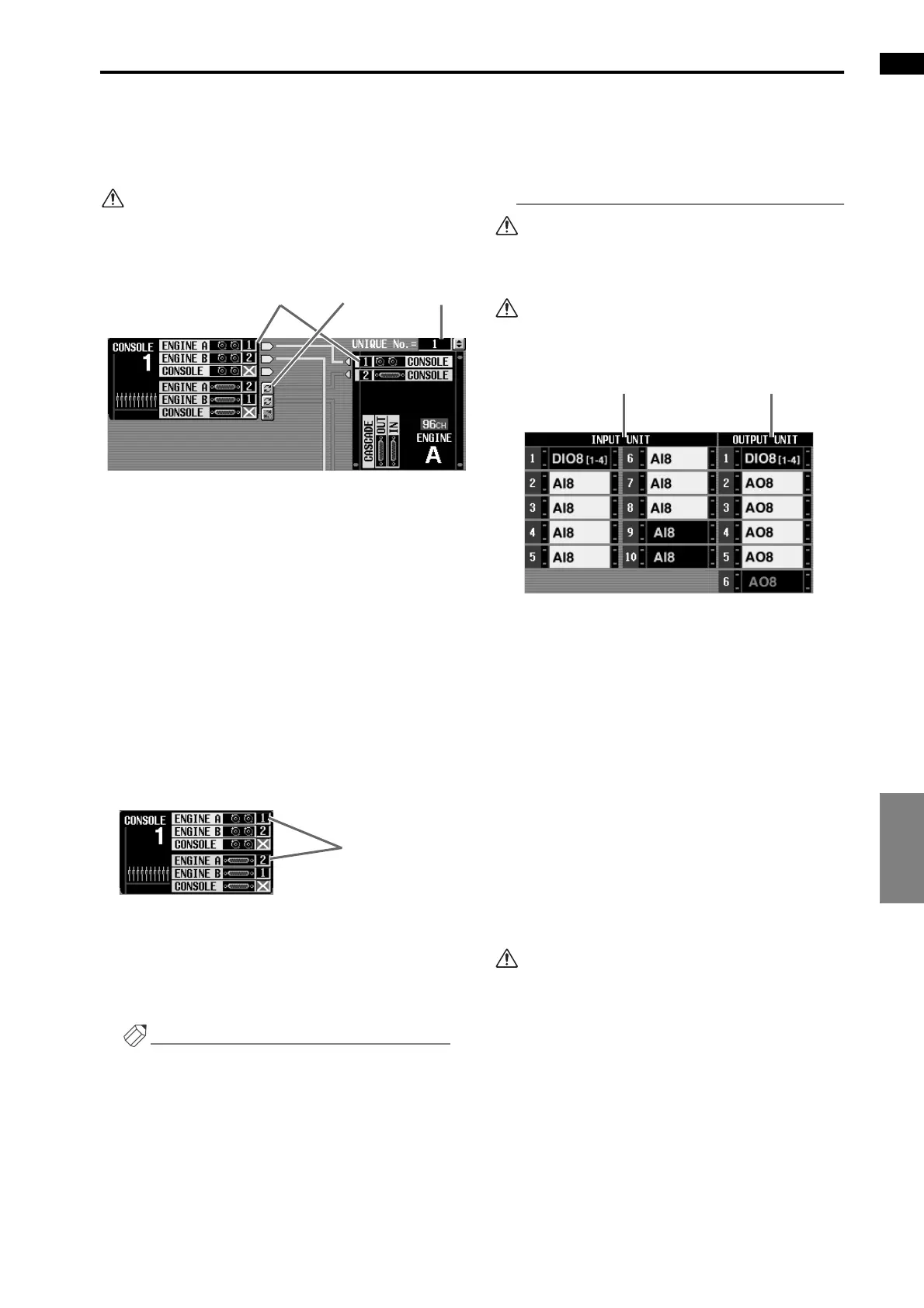 nected to OUTPUT connectors 1–6 of engine A/B