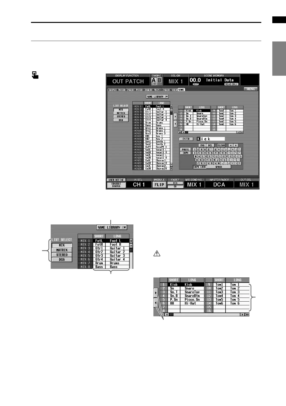 Assign a short name/long name to each MIX channel, MATRIX channel, DCA group 9–12, and STEREO A/B.