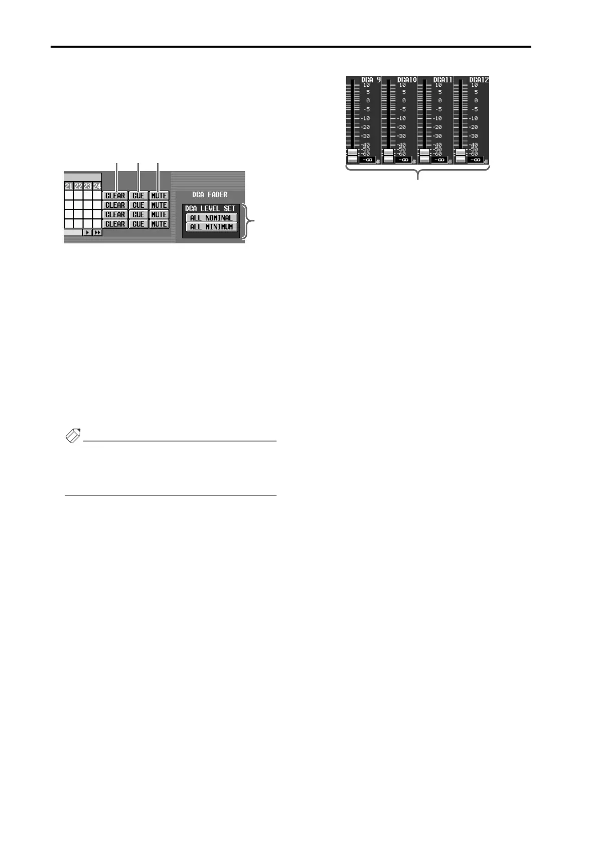 For each DCA fader, these buttons switch cue on/off.