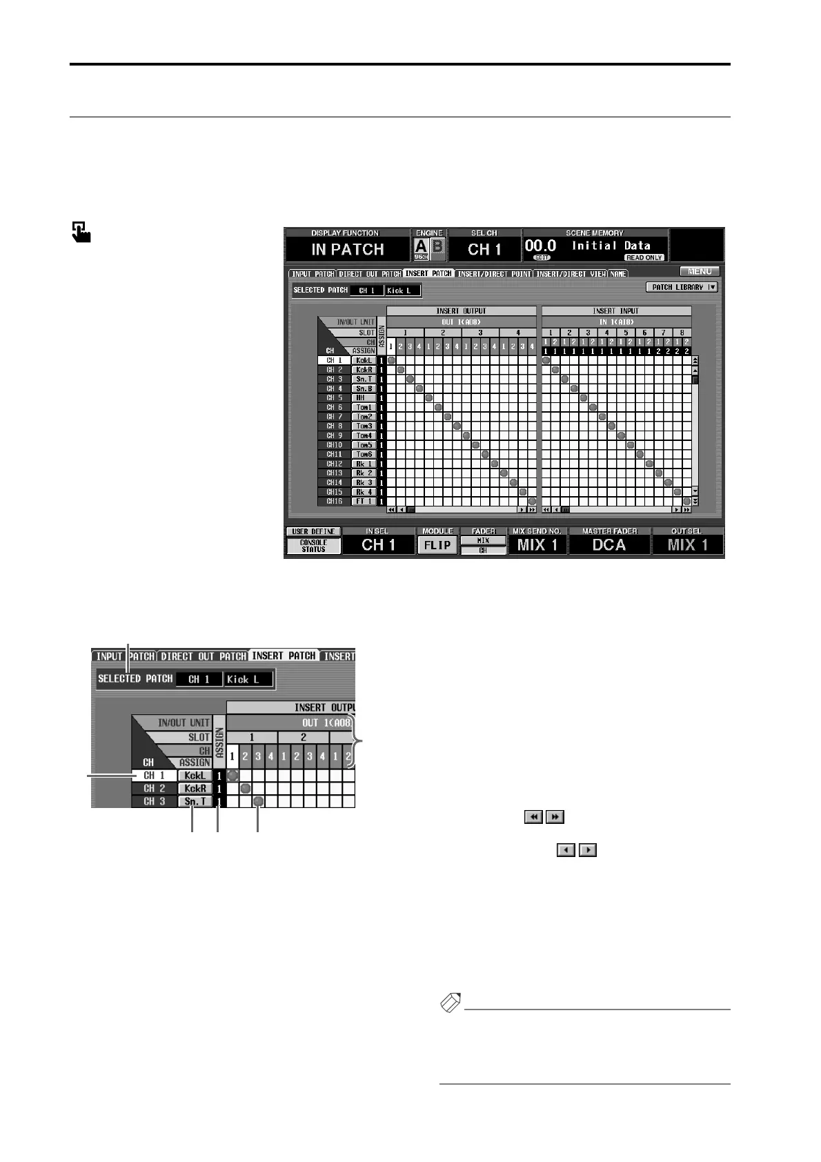 For each input channel, patch the input/output jacks used for inserting external devices such as an effect pro-