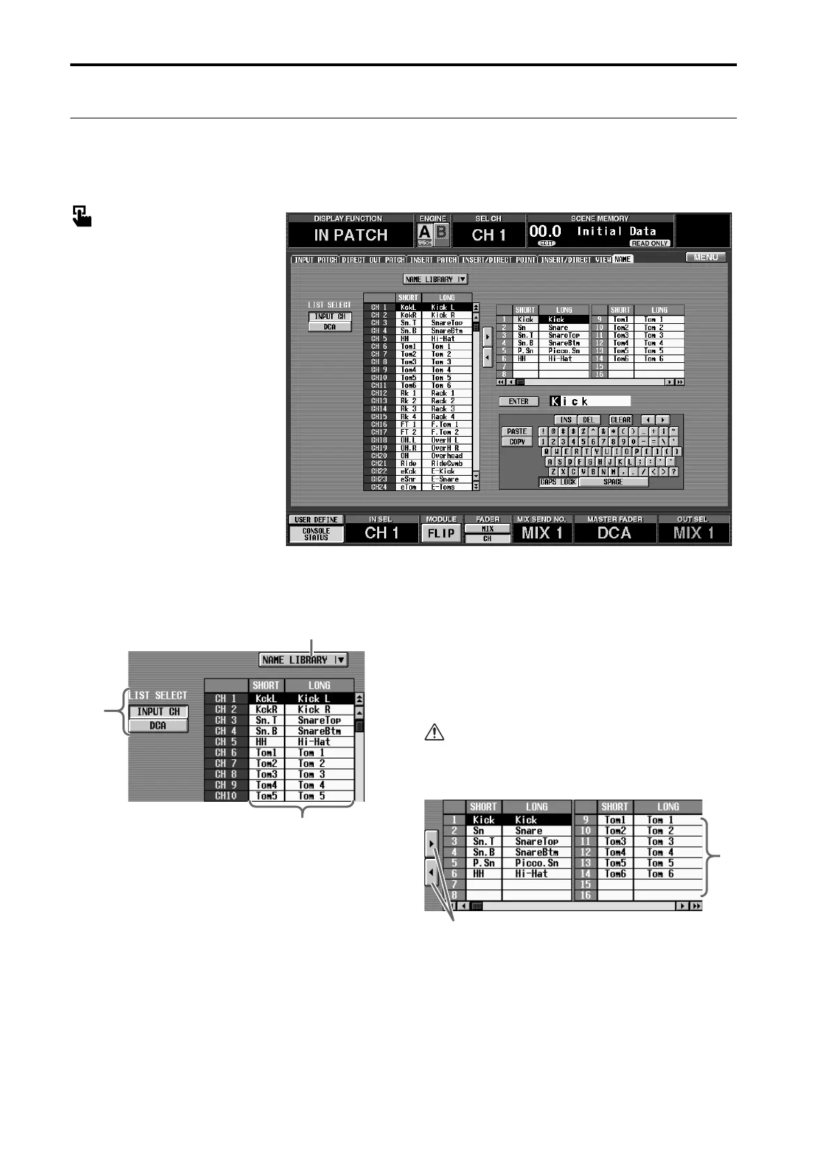 which you can store/recall name lists (→p.174).