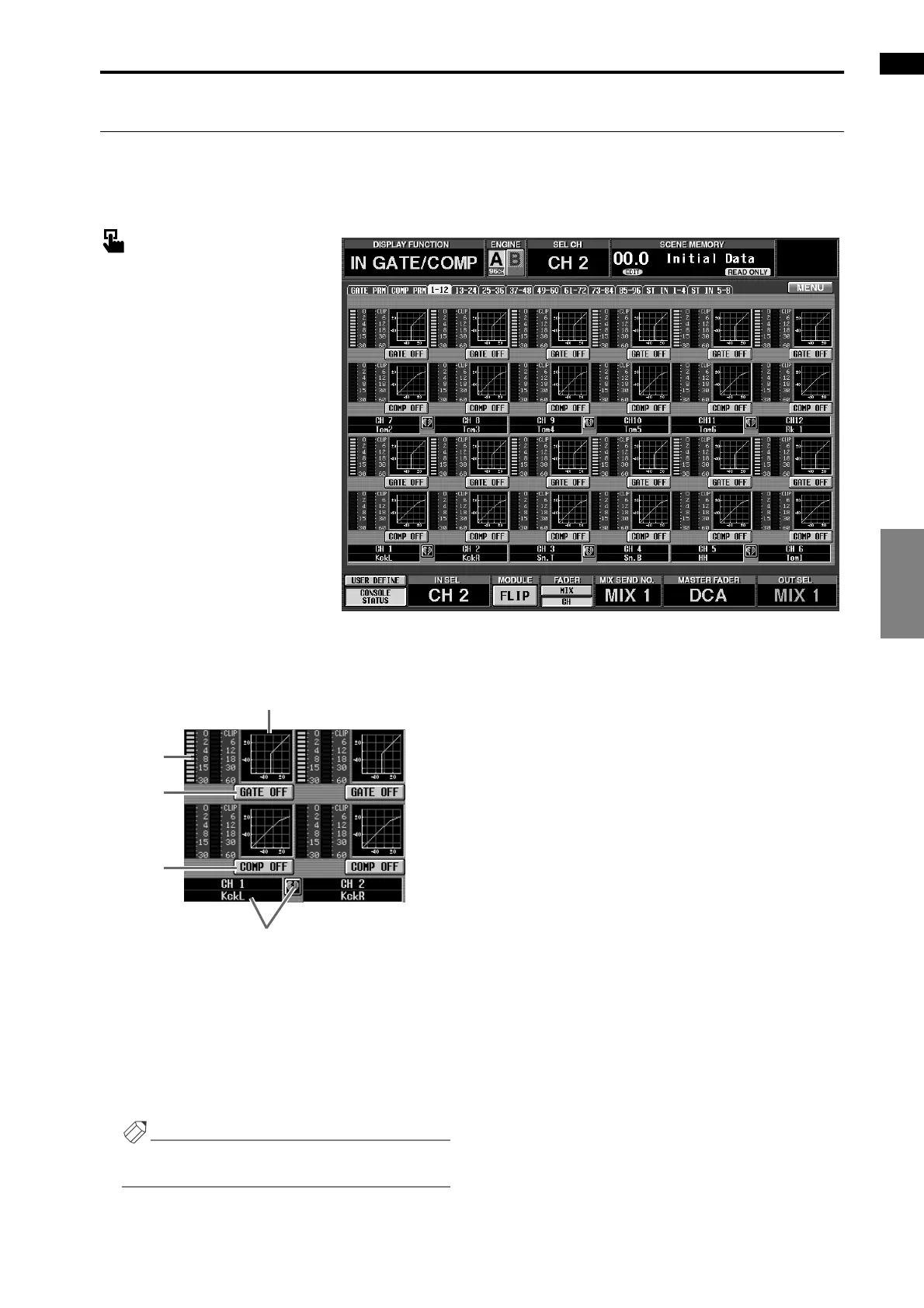 View a list of the gate/compressor settings for each input channel. Also, copy settings between input channels.