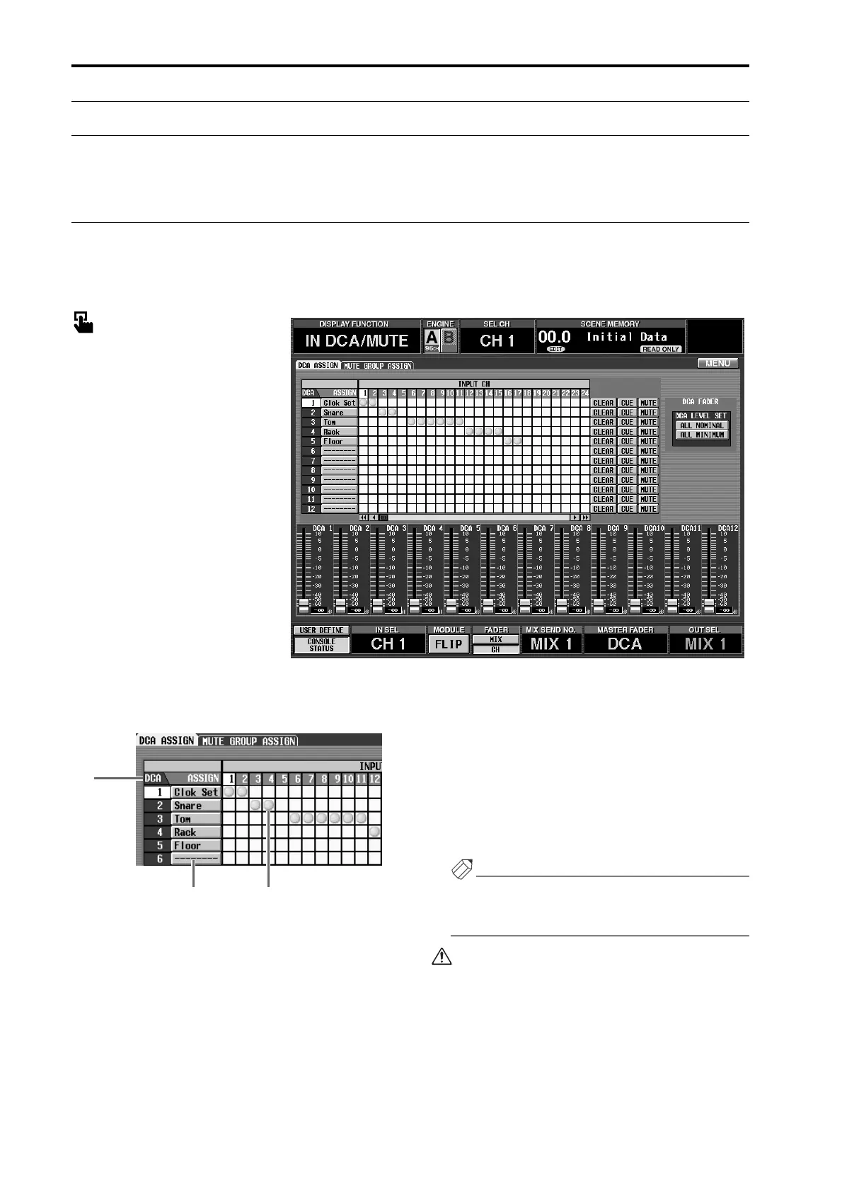 Assign input channels to DCA groups 1–12 so that they can be controlled by DCA faders 1–12.