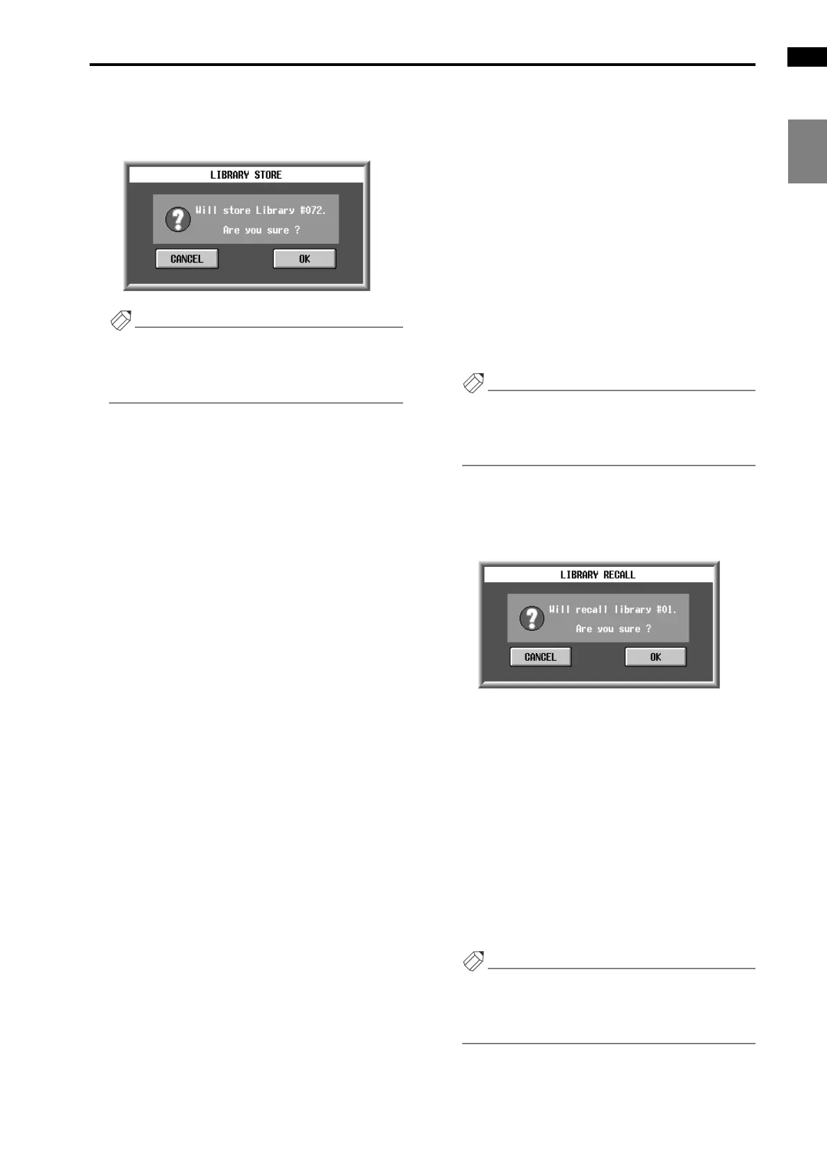 Recalling (loading) library settings into the