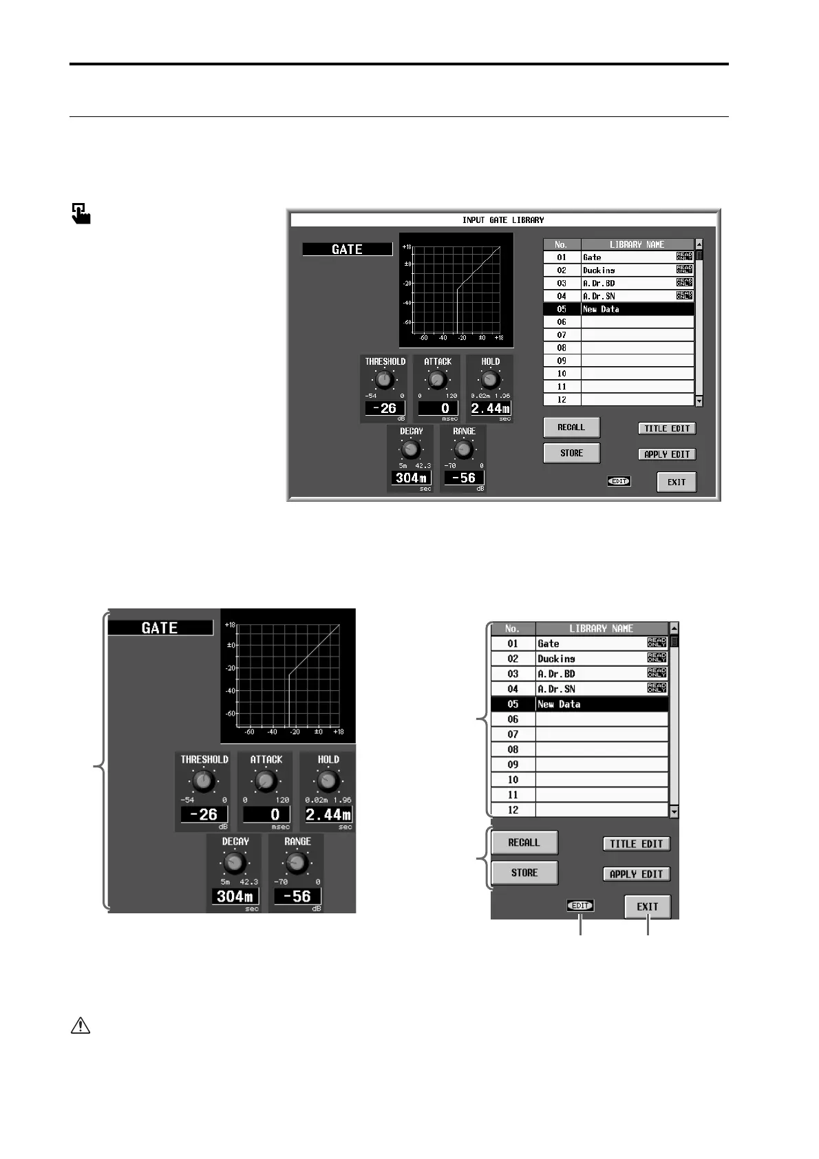 Here you can store and recall gate settings (input gate data) for the currently selected input channel.