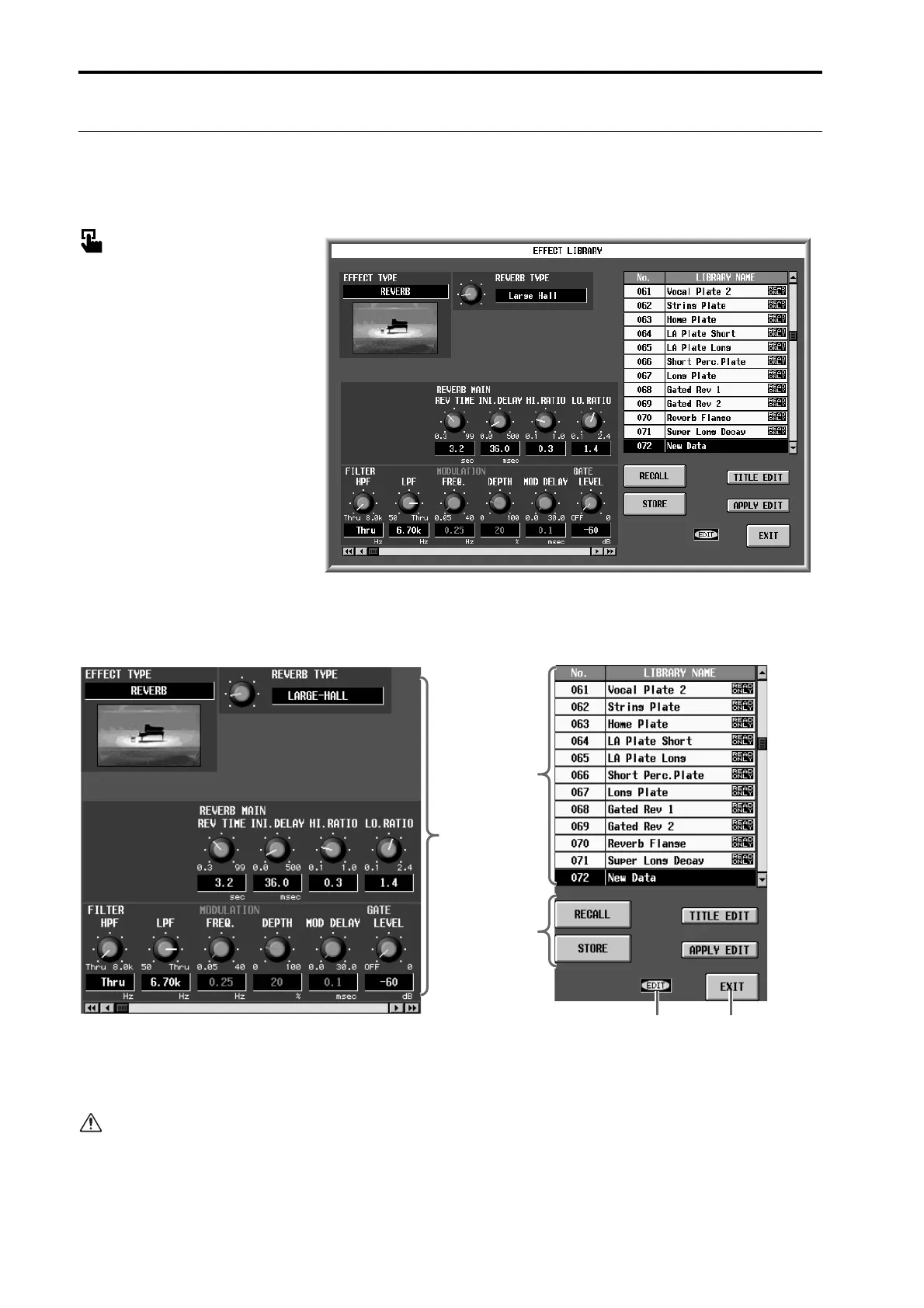 Here you can store and recall the effect settings (effect data) of the currently selected internal effect.