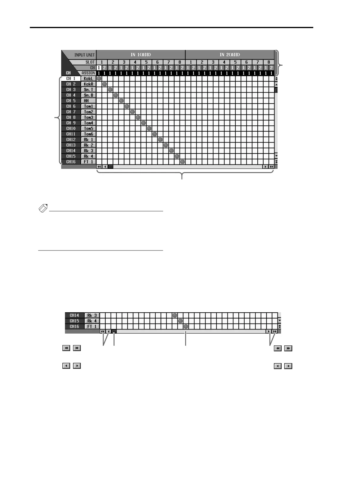 In this grid, input jacks (horizontal rows) can be patched to input channels (vertical col-