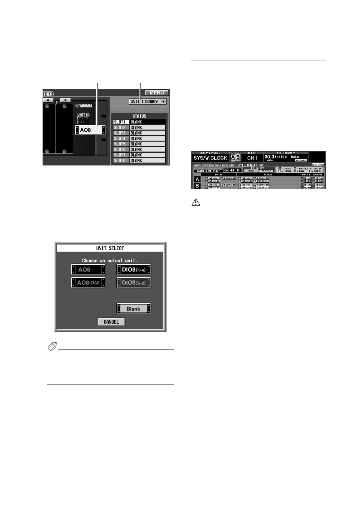 UNIT LIBRARY window, where you can store/recall