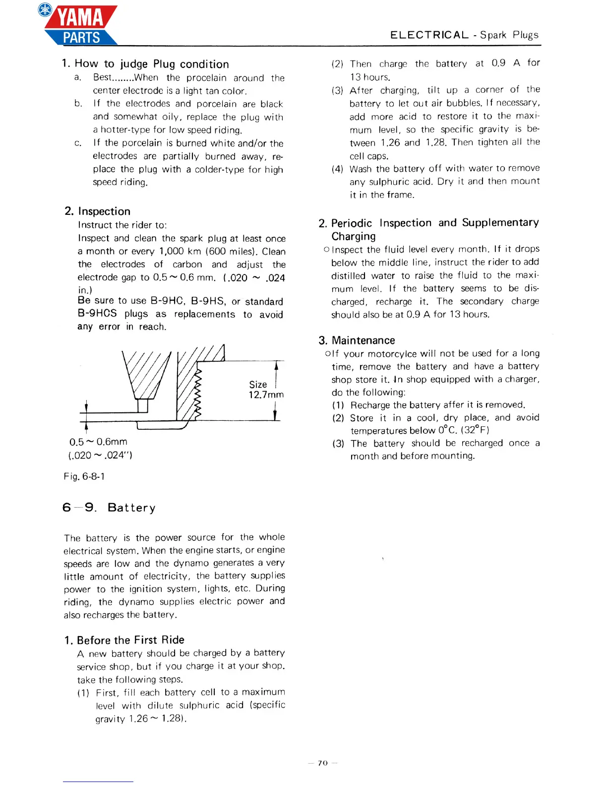 Yamaha CS3-E - 6-8. Spark Plugs; 6-9. Battery