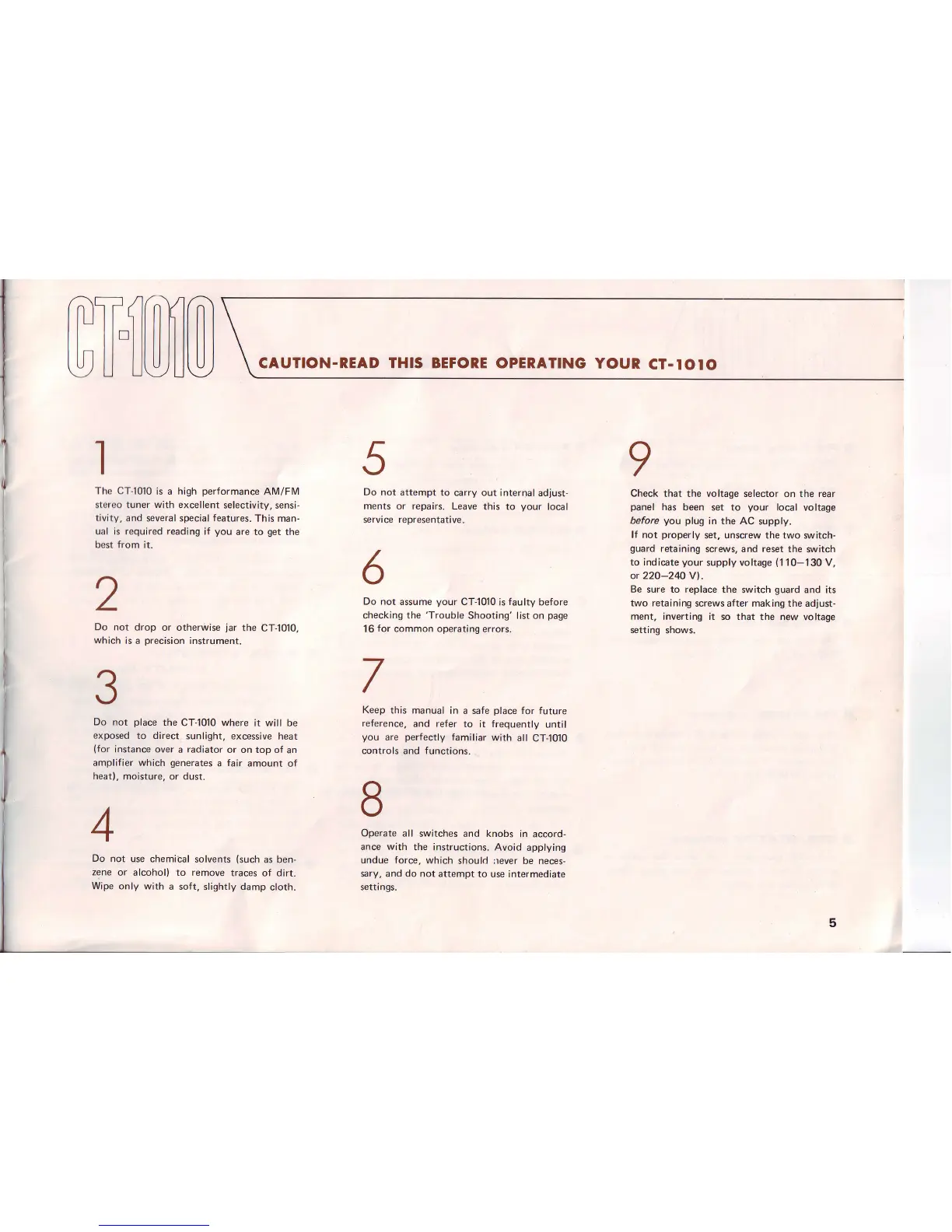 Yamaha CT-1010 - Operating Cautions and Safety; Handling, Environment, and Cleaning; Servicing, Repairs, and Troubleshooting; Manual Reference and Control Operation
