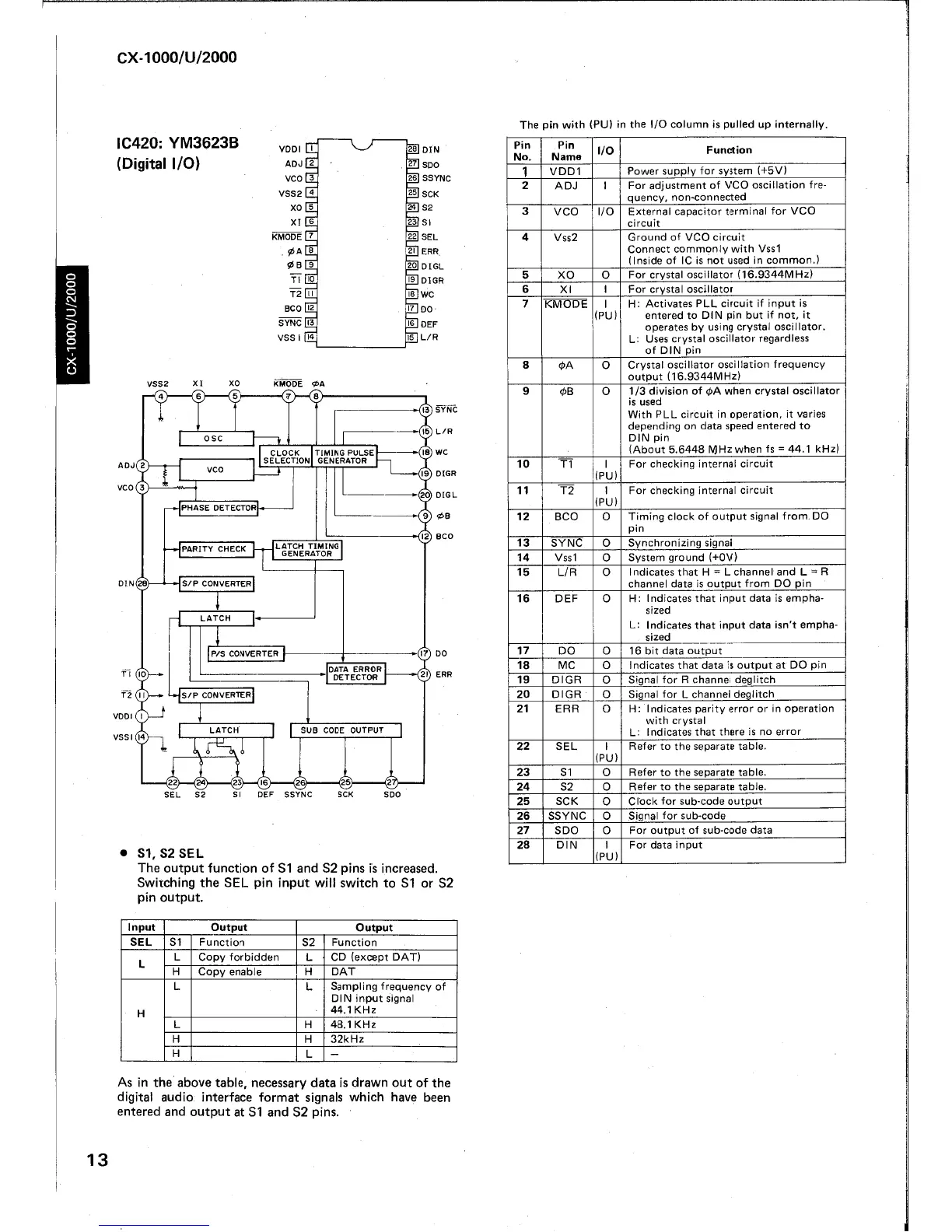 Yamaha CX-2000 - Digital Input;Output IC; YM3623 B Digital I;O Functions