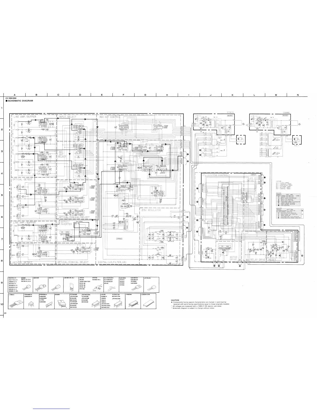 Yamaha CX-2000 - Detailed Schematic Diagrams; Signal Paths and Component Locations; Component Reference Guide