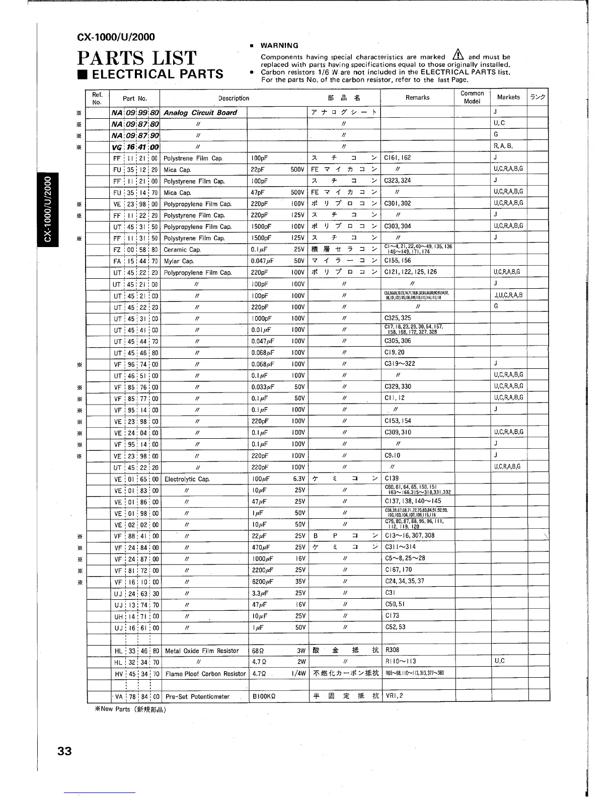 Yamaha CX-2000 - Electrical Parts List; Component Part Number Reference