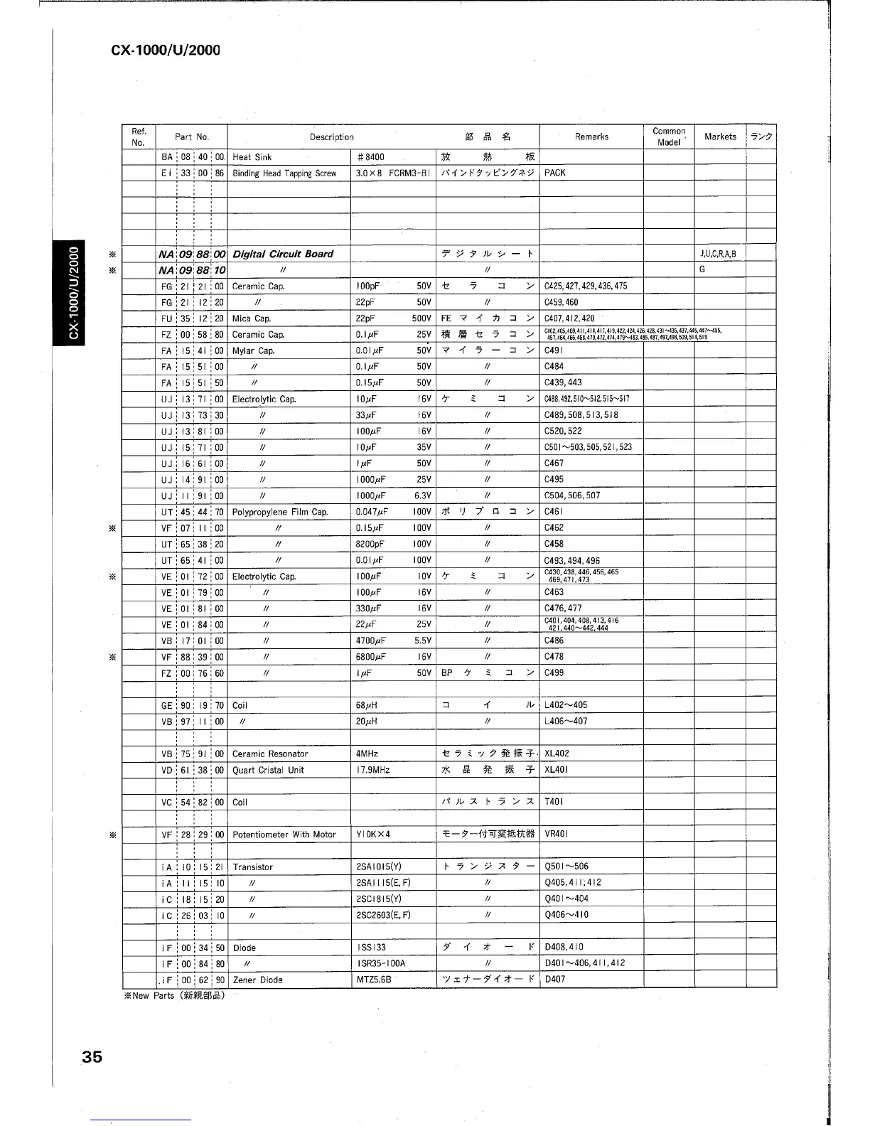 Yamaha CX-2000 - Component Listings; Capacitors, Coils, and Resonators; Potentiometers and Miscellaneous Parts